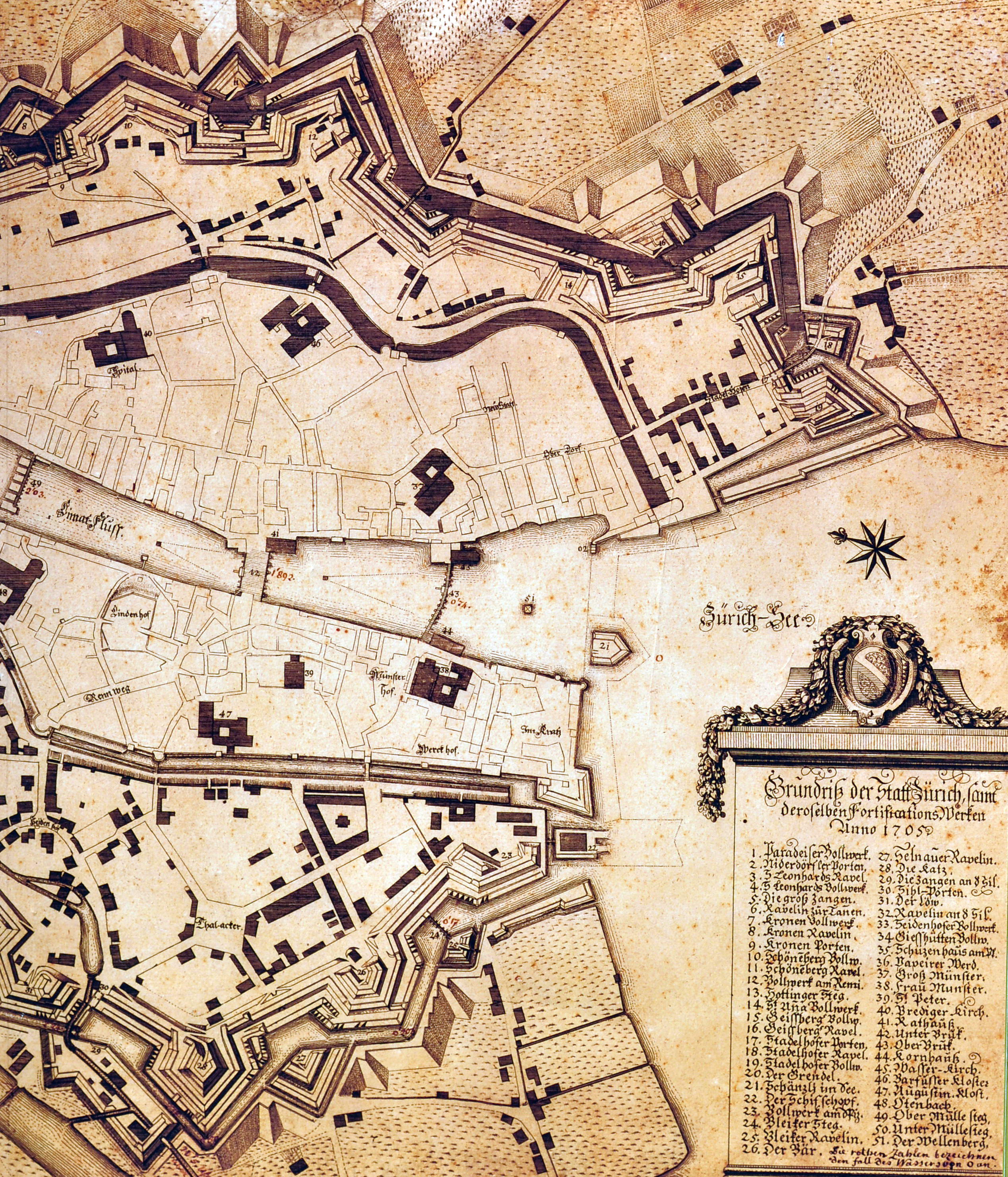 한때 리마트강과 취리히 호수 사이의 늪지대에 위치한 취리히 호수 주변의 선사시대 말뚝 주거지는 신석기 시대와 청동기 시대로 거슬러 올라간다.[14][15] 엥게의 취리히 호수 호숫가에 위치한 취리히–엥게 알펜콰이는 인근에 약 0.2k㎡ 면적의 호수 방류에 있는 반도였던 클라이너 하프너와 그로서 하프너의 유사한 정착지가 이웃했다. 현재 취리히 시내에 있는 정착지는 유네스코 세계 문화 유산 알프스 주변의 선사시대 말뚝 주거지와 스위스 국가 및 지역 중요문화재 목록에 등재되어 있다.[16]5. 2. 중세-근대