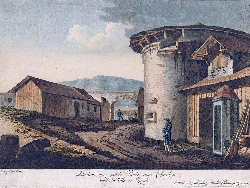 1558년부터 1562년까지 현재 벨뷰 광장 부지인 리마트콰이와 래미슈트라세가 만나는 지점에 참호가 있는 둥근 ''Auf Dorf'' 요새가 건설되었다. 구조적으로 도시 요새의 ''Langenöhrlisturm''과 연결되었으며, 원래는 취리히 호수의 물에 거의 완전히 둘러싸여 있었다. 이 보루는 호수에서 공격하는 적을 방어하기 위한 포병용 플랫폼과 함께 총안이 있는 포탄실로 구성되었다. 리마트 강 서쪽에 있는 Bauschänzli 요새와 ''Haus Bellevue'' 부지에 있던 강문과 세관인 중세 시대 Grendeltor를 보완했다. 1700년경, 제방 건설 후, 이 보루는 원래 기능을 상실했다. 견고한 지붕을 갖춘 이 지역은 소금 창고로 사용되었다. 1795년까지 새로운 방파제 건설이 이루어졌으며, ''Kohlepörtli'' 문에서 취리히 호수와 리마트 강 사이의 물품이 환적되었다. 2015년 3월 도로 공사 과정에서 c. 1830년에 철거된 유적이 발견되었다.[6]