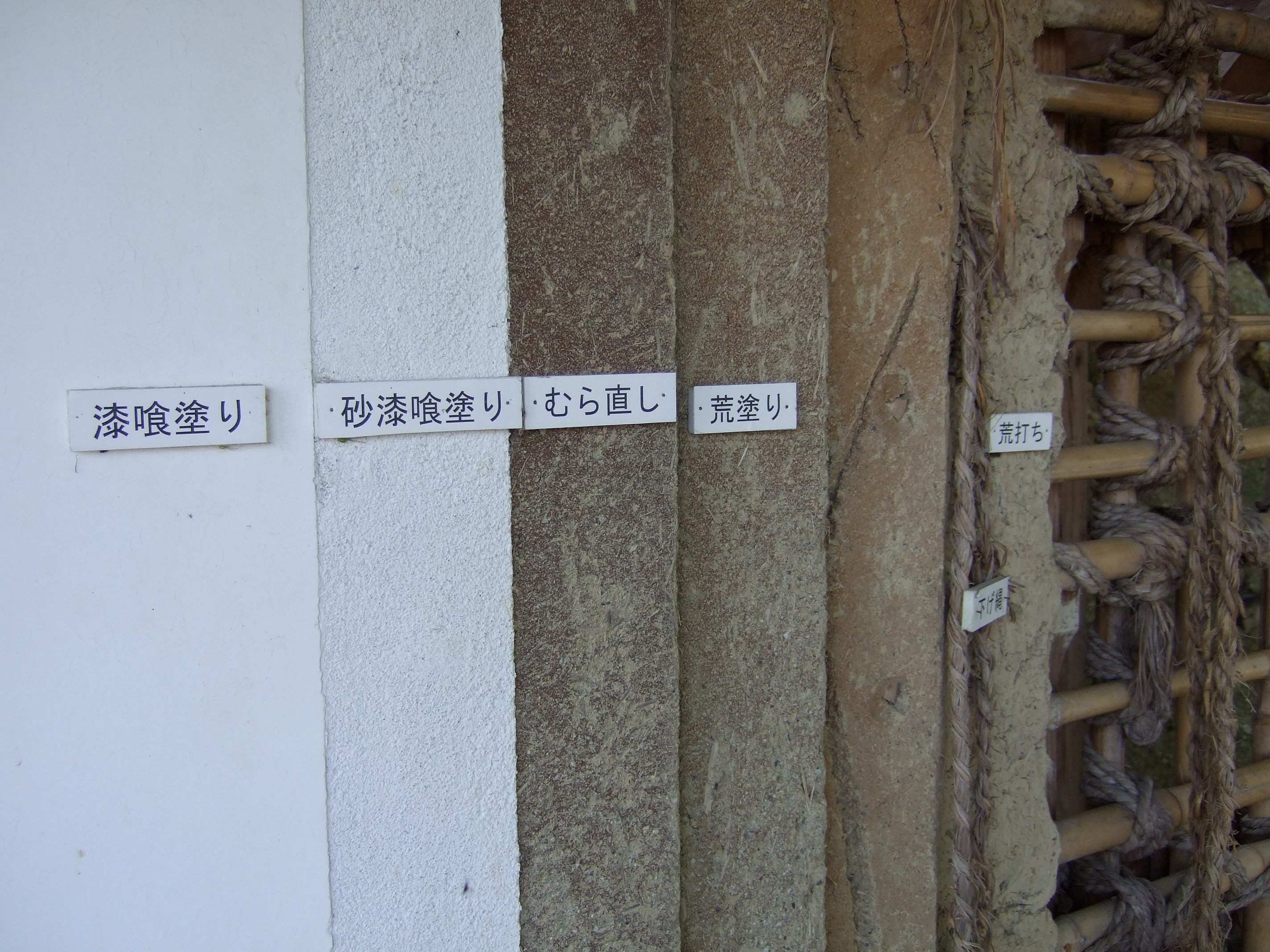 메이지, 다이쇼 시대에는 흙벽, 회반죽, 판자, 돌 외에 벽돌이 사용되었다.[13]