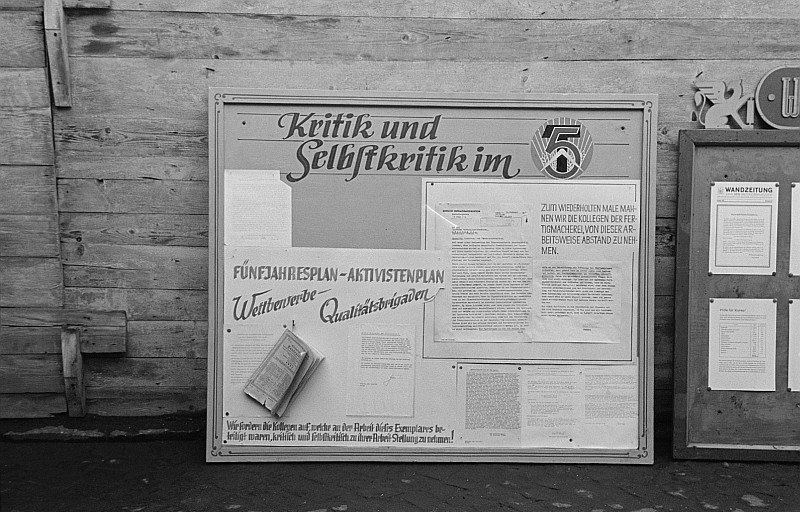 동독 공장 벽신문은 "비판과 자기 비판"의 행동 통제 메커니즘을 활용하였다.