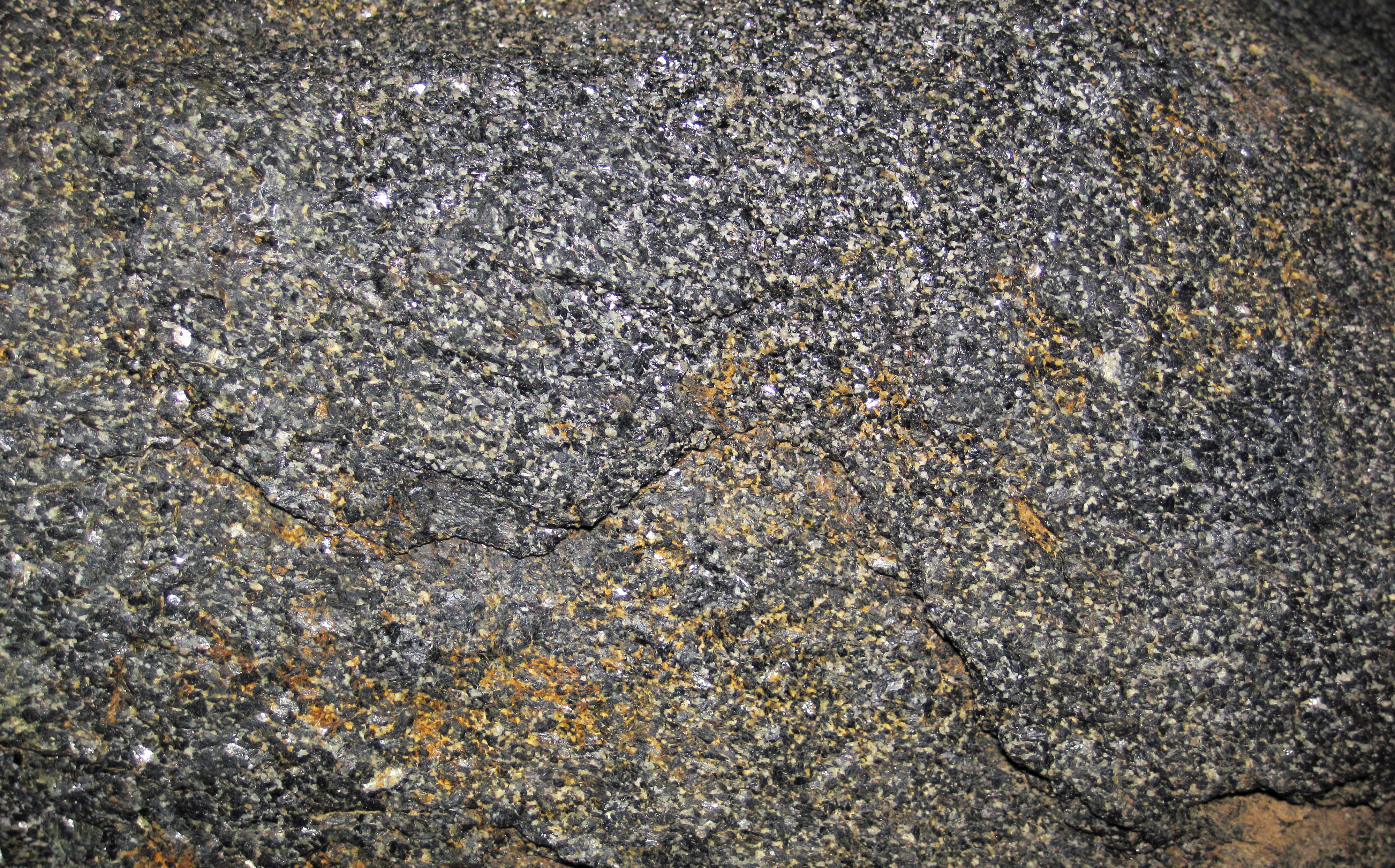 현무암이 변성 작용을 받아 형성된 각섬암으로, 조립질을 나타냄