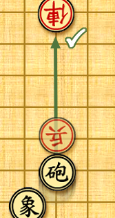 |a1에 있는 백색 나이트라이더는 b3에 있는 폰에 의해 c5에 도달하는 것이 차단되었다. a2, b2 및 b1에 있는 기물과 상관없이 c2로 이동할 수 있다. e3에 있는 적 폰을 잡을 수 있지만 g4로 계속 이동할 수 없으므로 흑색 킹은 체크 상태가 아니다. 흑색 e-폰은 핀(고정) 상태이며, 이를 이동하면 킹이 체크에 노출된다. 백색 퀸과 룩은 a8에 있는 흑색 나이트라이더에 의해 스큐어링된다. 따라서 NNxe3+가 가능하다.}}