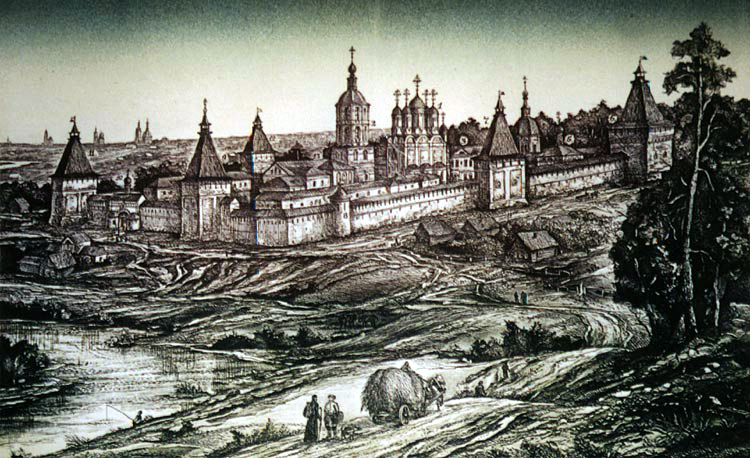 1444년에는 현재 파프누티예프 수도원(성 파프누티우스 수도원)이라고 불리는 수도원이 보롭스크 근처에 건설되었다. 창립자인 보롭스크의 파프누티우스는 후에 성인으로 추대되었다. 유명한 이콘 화가 디오니시오스의 초기 작품인 프레스코화는 15세기 말에 이 수도원에서 제작되었으며, 지금도 남아 있다. 견고한 성벽과 탑으로 둘러싸인 수도원은 크렘린(요새)으로도 기능했으며, 보리스 고두노프의 치세에도, 그 이후의 대혼란 시대의 전투에서도 살아남았다.