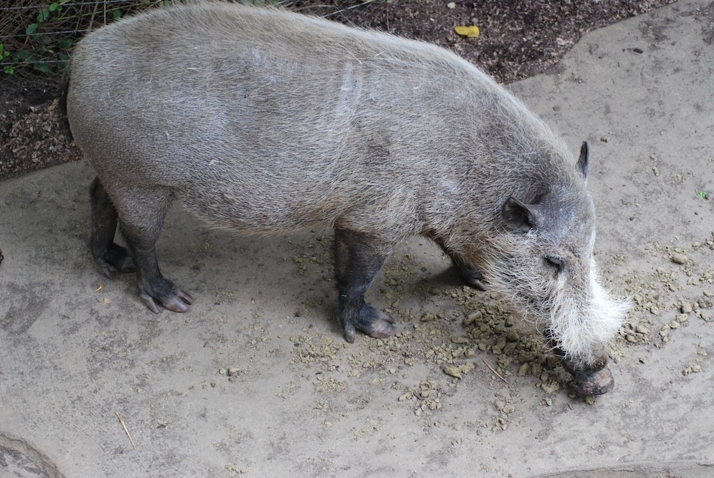 독일 뮌헨의 헬라브룬 동물원에서 사육되었던 수염멧돼지.