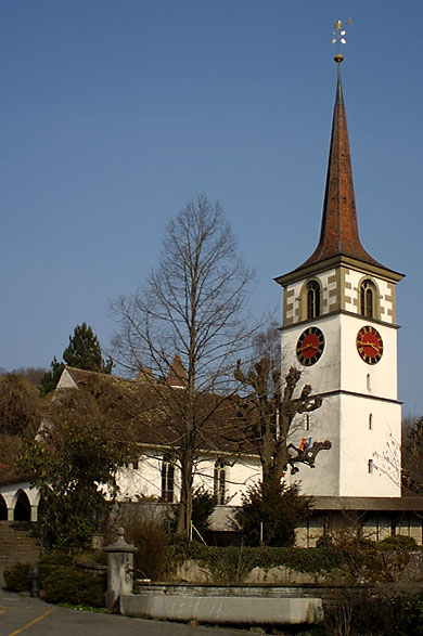 최초의 마을 교회는 중세 초기에 지어진 목조 건물이었을 것으로 추정된다. 이 목조 건물은 나중에 석조 건물로 대체되었을 가능성이 있다. 11세기에는 초기 교회의 중세 초기 무덤 위에 성 모리스 교회가 세워졌다. 교회 종탑은 1430년 이후에 건설되었다. 15세기 3/4분기에는 교회 벽에 벽화가 그려졌다. 현재의 성가대와 성가대 창문은 1520~21년에 건물에 추가되었다.[10]