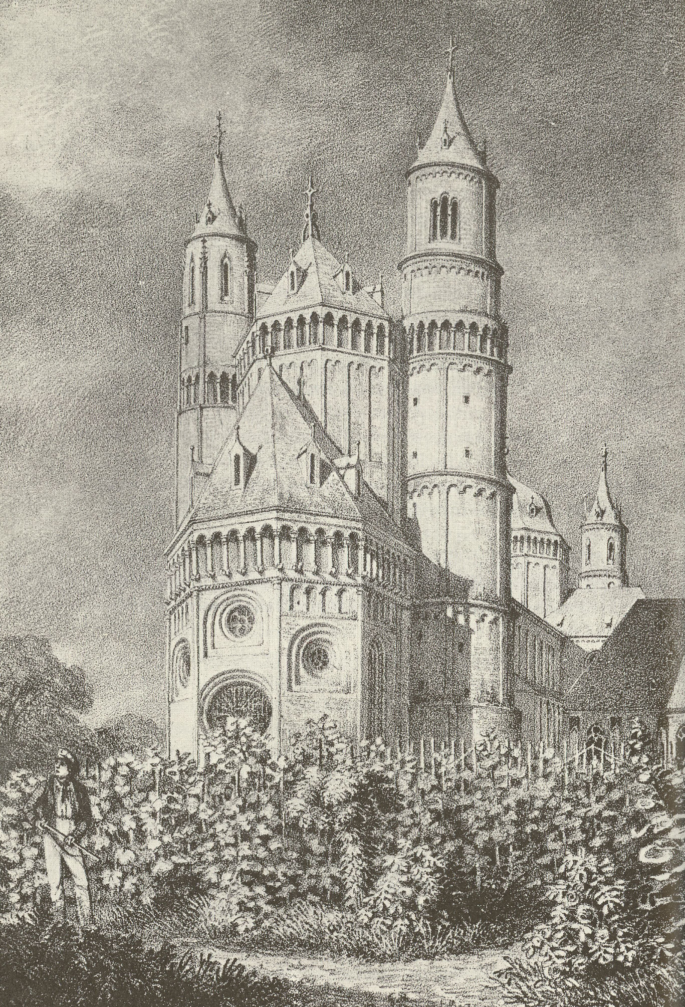 메로빙거 왕조 시대, 브룬힐디스와 다고베르트 1세는 로마 포럼 기초 위에 교회를 세웠는데, 이것이 현재 대성당의 전신으로 추정된다. 부르하르트 주교 시대(1000-1025)에 현재 크기의 대성당이 건설되어 1018년에 봉헌되었지만, 서쪽 부분 붕괴로 재건되었다.