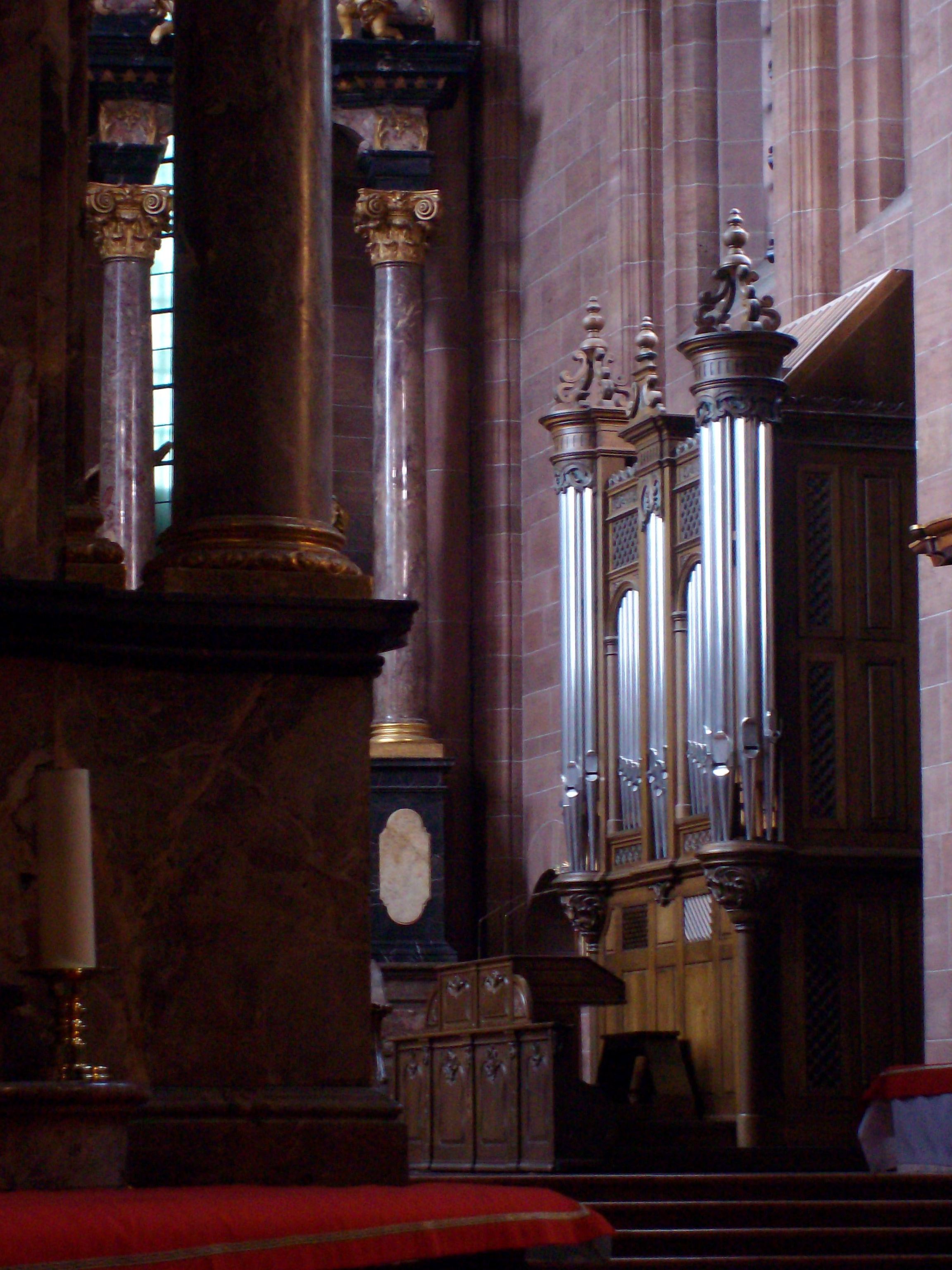 아리스티드 카바예-콜의 합창 오르간 스타일의 기계식 연주 및 트랙커 액션을 갖춘 합창 오르간이 1996년 오버링거에 의해 제작되었다. 이 오르간 디자인의 특징은 조성이 매우 콤팩트하면서도 오버링거가 특별히 개발한 파이프 구조로 인해 벽에서 50cm 정도 이동할 수 있다는 점이다. 이 콤팩트한 구조는 본당에서 화려한 고제단을 바라보는 시야가 오르간에 의해 가려지지 않도록 하기 위해 필요했다. 이러한 작은 크기를 달성하기 위해 공기 흡입구의 특수한 구조가 필요했다. 이 디자인은 오르간 마스터이자 건축가인 볼프강 오버링거가 교구 건축가 및 보존 전문가와 긴밀히 협력하여 완성되었다. 이 오르간은 오버링거의 빈데스하임 작업장에서 오르가니스트 다니엘 로스와 협력하여 배치되었다. 악기 조율은 아리스티드 카바예-콜의 디자인 전문가인 장-피에르 스비데르스키가 담당했다.