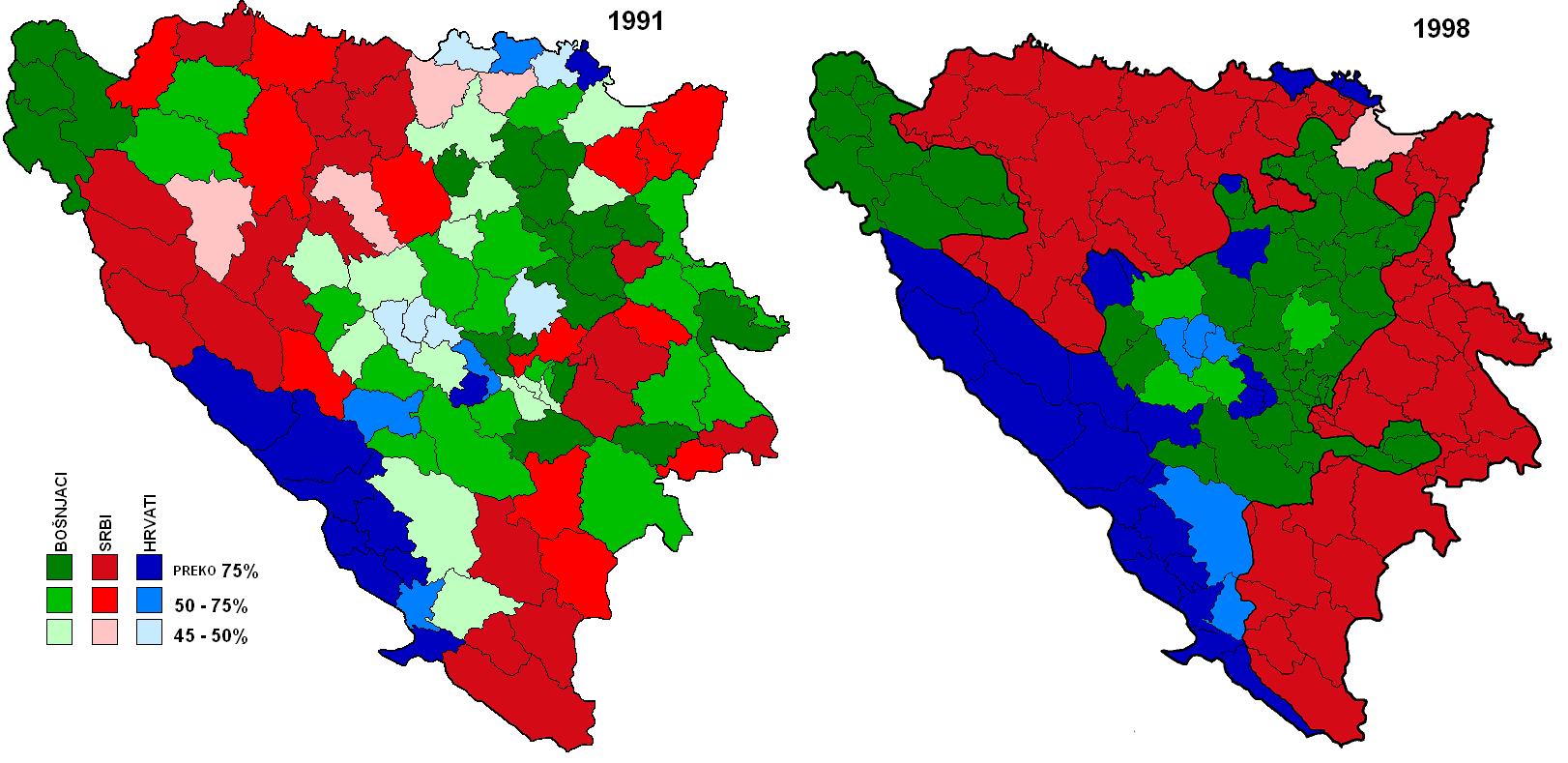 추가 정보 | 1992년부터 1994년까지 보스니아 헤르체고비나 공화국은 대다수의 보스니아 크로아티아인과 보스니아 세르비아인의 지지를 받지 못했다. 따라서 주로 보슈냐크인을 대표했다. 1994년부터 1995년까지 보스니아 헤르체고비나 공화국은 워싱턴 협정으로 인해 보슈냐크인과 보스니아 크로아티아인의 지지를 모두 받았다. |