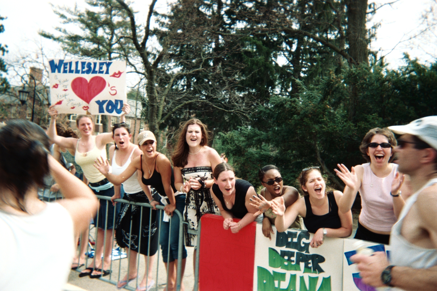 1966년, 로베르타 기브(통칭 Bobbi Gibb영어)가 처음으로 레이스를 완주했지만 주최 측은 미등록 참가자인 기브를 인정하지 않았다.[84] 1967년에는 캐서린 스위처가 "K.V. 스위처"라는 이니셜로 등록하고 레이스에 참가하였지만, 주최 측은 출전을 인정하지 않고 배제하려 했다.[84] 1968년부터 주최 측은 여성의 출전을 묵인하기 시작했고, 1969년에는 여자부 1위로 골인한 사라 버먼을 "여자 우승자"로 인정했다.[84] 1972년 대회부터 정식으로 여성의 참가가 허용되었다.