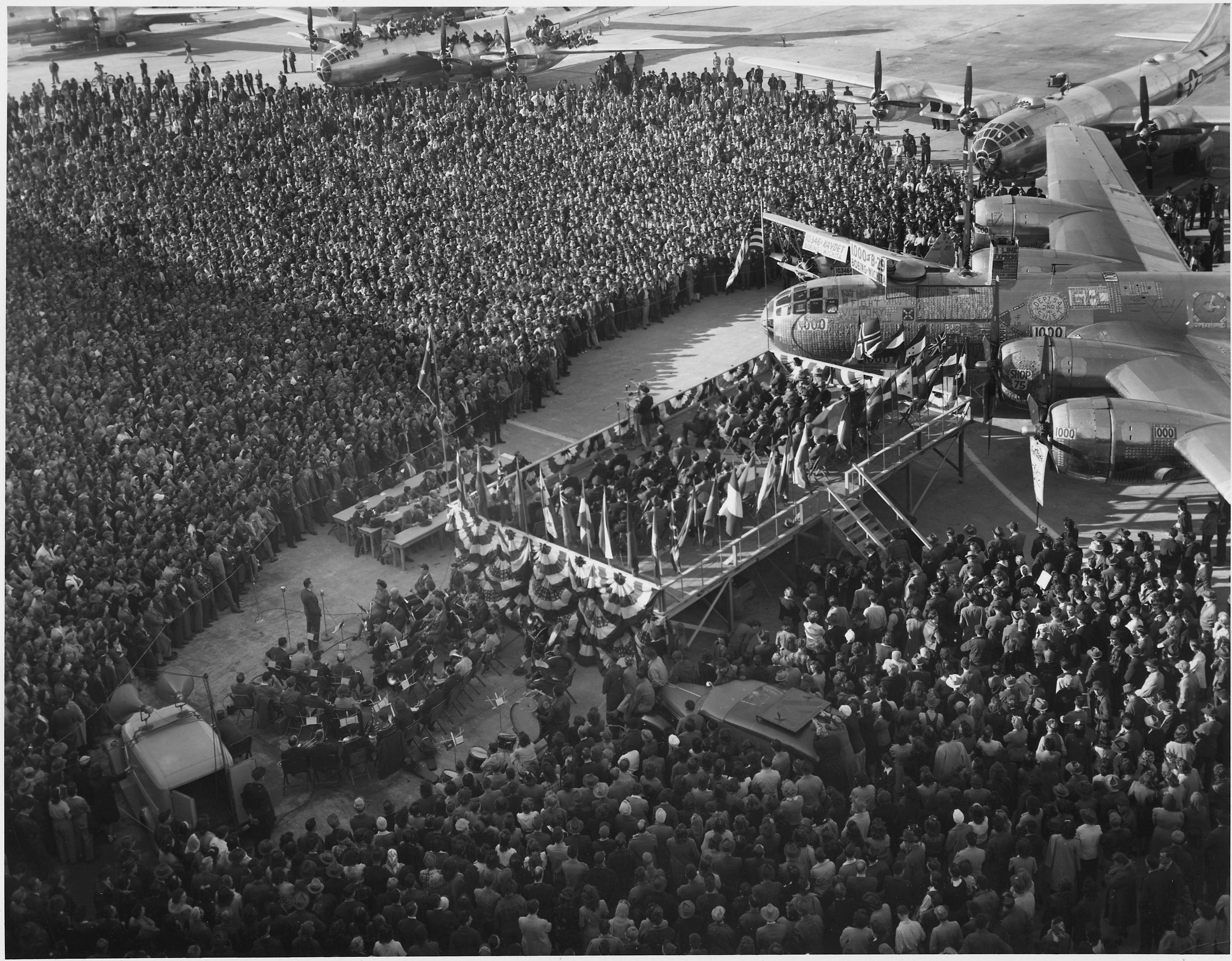 미국에서는 B-29의 전과로 일본의 항복을 앞당겨 일본 본토 상륙전이라는 큰 피해가 예상되는 싸움을 피할 수 있었다고 평가한다. 원폭 투하 승무원은 영웅이 되어 전후 각지에서 공연을 했다. 히로시마시에 원자폭탄을 투하한 ''에놀라 게이''는 퇴역 후 분해, 보존되었다가 복원되어 스미스소니언 박물관에 전시되었다. ''박스 카''는 국립 미국 공군 박물관에 보관되고 있다.