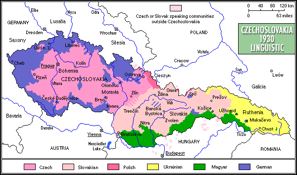 토마시 마사리크 대통령 아래 체코슬로바키아는 자유민주주의 공화국이 되었지만, 독일인 및 헝가리 소수 민족과의 관계에 문제가 있었다. 1938년 뮌헨 협정 이후 수데텐란트는 나치 독일에 합병되었다. 1939년 보헤미아와 모라비아의 나머지 지역도 독일에 합병되었고, 슬로바키아 지역은 슬로바키아 공화국이 되었다. 1939년부터 1945년까지 보헤미아(수데텐란트 제외)는 모라비아와 함께 독일의 보헤미아와 모라비아 보호령을 형성했다.
