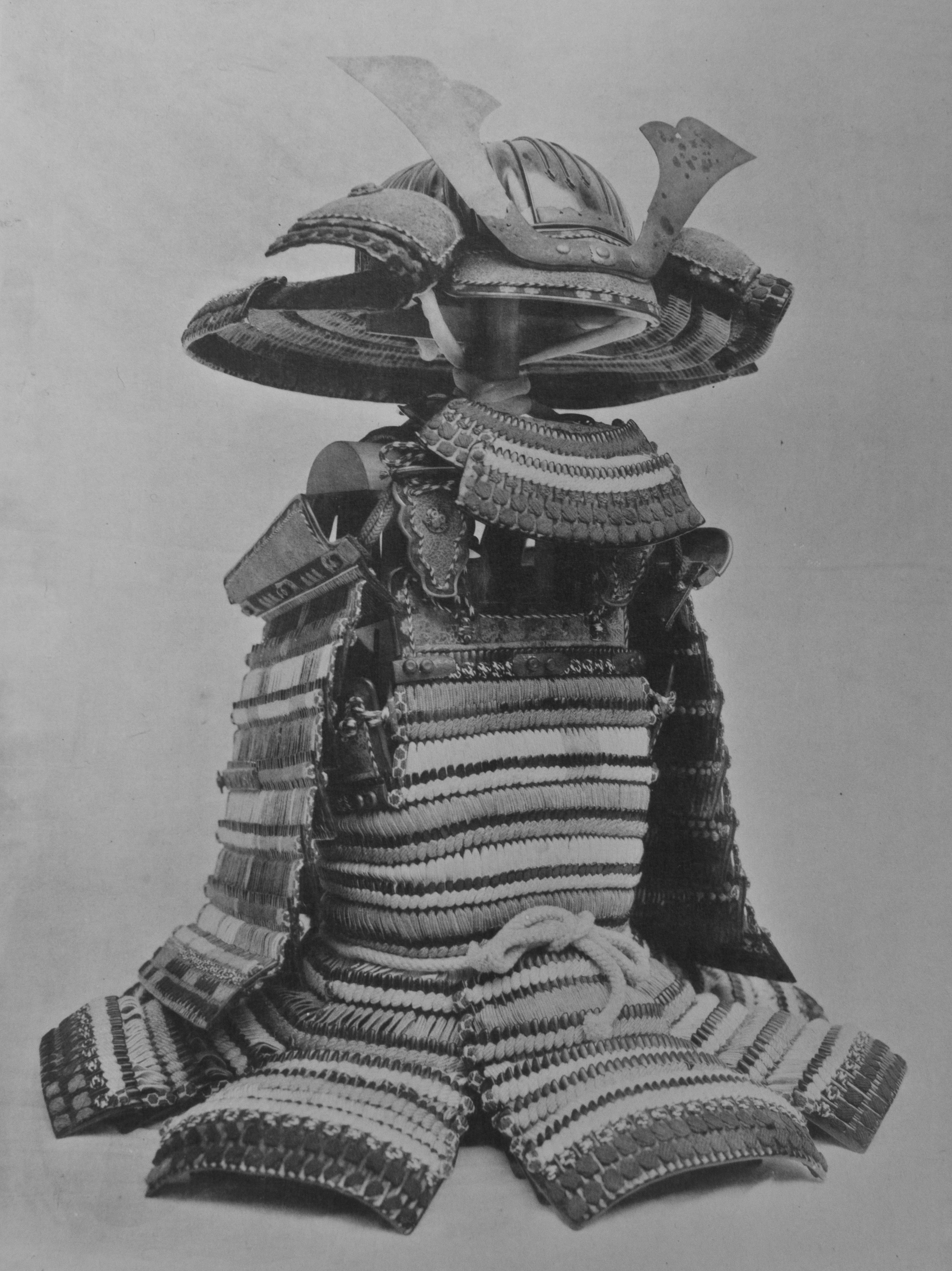 가마쿠라 시대 후기, 간이 갑옷인 하라아테(腹当)에서 진화하여 복권(腹巻)이 생겨난 것으로 여겨진다. 보병전에 적합한 경편한 구조 때문에, 원래는 주로 하급 보병 무사에 의해 사용되었으며, 투구나 소매 등은 부속되지 않고 복권 본체만으로 사용되는 경무장이었다. 그러나 남북조 시대 무렵부터 보병전이 증가하는 등 전법이 변화하면서, 그 움직이기 쉬움 때문에 차츰 기마 상급 무사도 착용하게 되었다. 그 때, 투구와 소매, 행엽 등을 갖추어 중장화하고, 동시에 위모의 색을 늘리는 등 상급 무사가 사용하기에 걸맞은 화려한 것이 되었다.2. 2. 발전과 변화 (무로마치 시대 ~ 아즈치모모야마 시대)