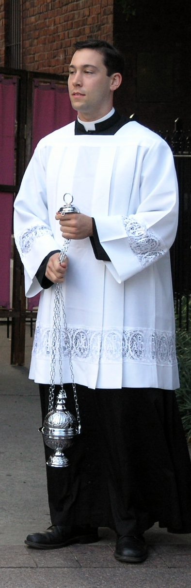 - 복음 선포 전에 사제에게 향로와 향을 전달하고, 독서대로 가는 부제나 사제보다 먼저 향로와 촛불을 들고 간다.[27][28]