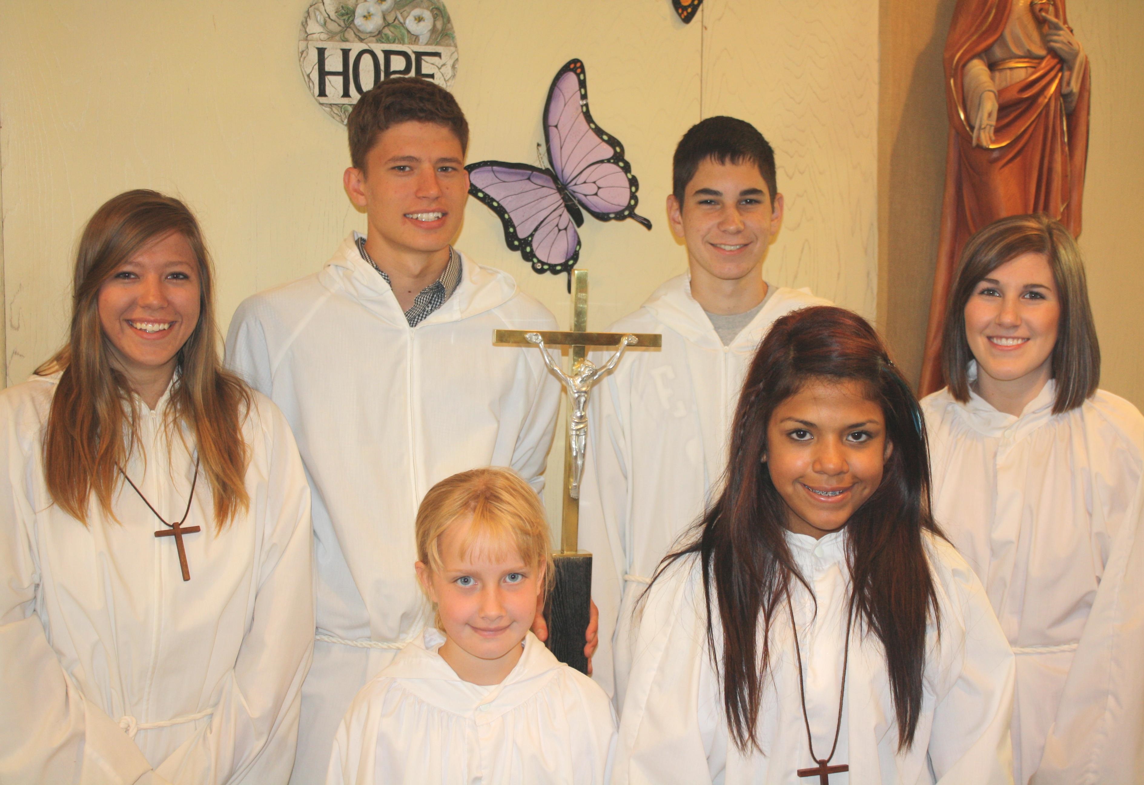 - 십자복사 (영어로 crucifer는 입당예식과 순행 때 사용되는 십자가를 들고 성찬례 도중 사제가 성만찬의 제정사, 감사, 기억, 성령청원을 하는 기도인 성찬의 기도, 거룩하시다에 종을 침)
