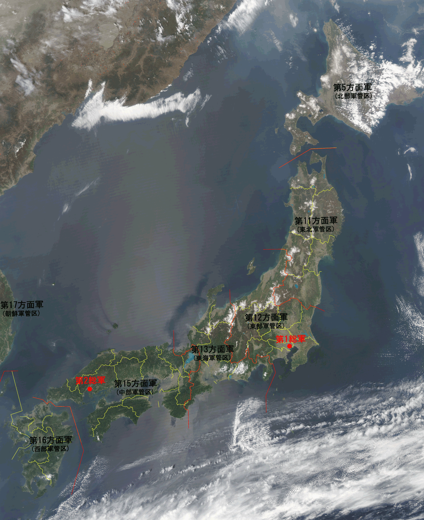 제2총군 | 제15방면군 | 중부군관구 (간사이, 주고쿠, 시코쿠 지방) |