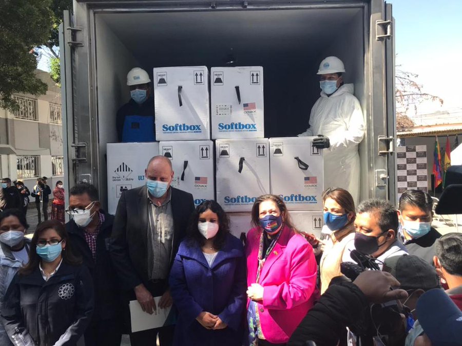 2021년 1월, 볼리비아 정부는 인도의 세럼 연구소와 500만 회 분의 옥스퍼드-아스트라제네카 백신 공급 계약을 체결했으며, 이 백신은 4월부터 도착할 예정이었다.[44]