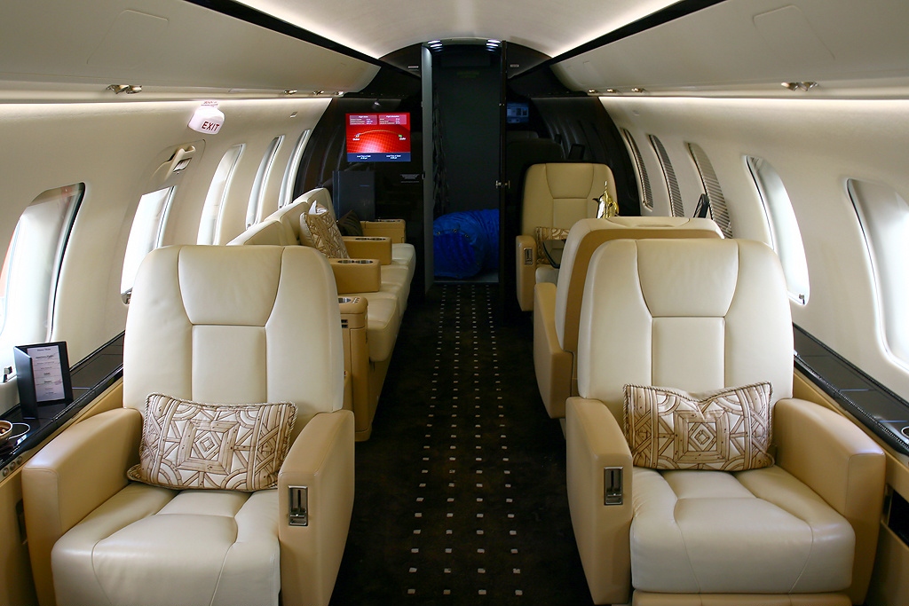 표준 이그제큐티브 항공기 구성에서 객실은 전방 갤리와 2개의 좌석 섹션으로 나뉘며, 4개의 의자 클럽 섹션과 회의 그룹 영역 또는 소파, 그리고 후방 끝의 화장실이 장착되어 있다.[21][2] 의자는 완전히 젖힐 수 있으며 회전할 수 있고, 소파는 수면 시설로 사용할 수 있다. 초기 객실에는 전화, 조명 제어 및 스테레오 시스템과 같은 사치품, 손 수하물 및 기타 작은 품목을 보관하기 위한 한 쌍의 옷장이 설치되었다.[2]