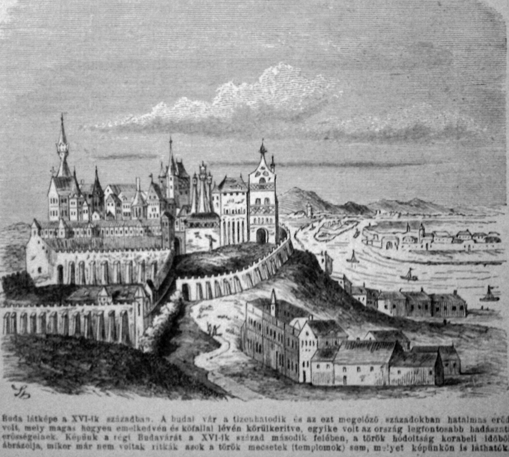 모하치 전투 이후 중세 헝가리 왕국은 붕괴되었다. 오스만 제국은 1526년 9월 11일 부다를 점령하고 약탈했으나, 왕궁은 크게 손상되지 않았다. 술탄 술레이만 1세는 훈야디, 팔라스 아테네, 헤라클레스 등 청동 조각상과 코르비나 도서관의 책들을 콘스탄티노플로 가져갔다.[26] 1529년 오스만 군대는 다시 부다를 포위, 점령하여 궁전은 심하게 손상되었다. 1541년 8월 29일, 부다는 저항 없이 오스만 제국에 다시 점령되어 부딘 에야레트의 중심지가 되었다. 원래 독일인과 헝가리인들은 도시를 떠났고, 오스만 제국과 발칸 반도에서 온 이민자들이 그들의 자리를 차지했다.[2]