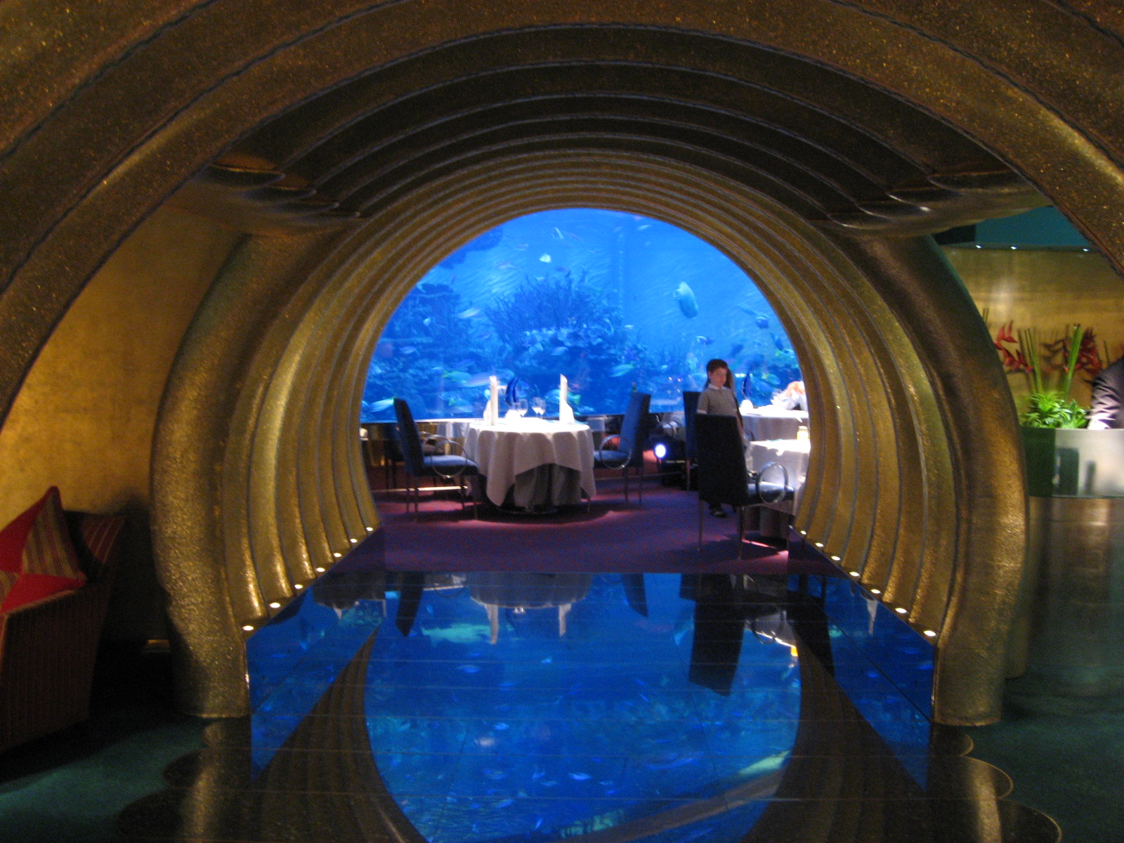 페르시아만 해발 200m 높이에 위치한 알 문타하 레스토랑에서는 두바이 시내를 내려다볼 수 있으며, 캔틸레버 구조로 지지된다.[42] 알 마하라 레스토랑은 대형 수족관을 지나야 하며, ''Condé Nast Traveler''가 선정한 세계 최고 레스토랑 10개 중 하나이다.[42] 이 외에도 4개의 레스토랑이 더 있다.[42]