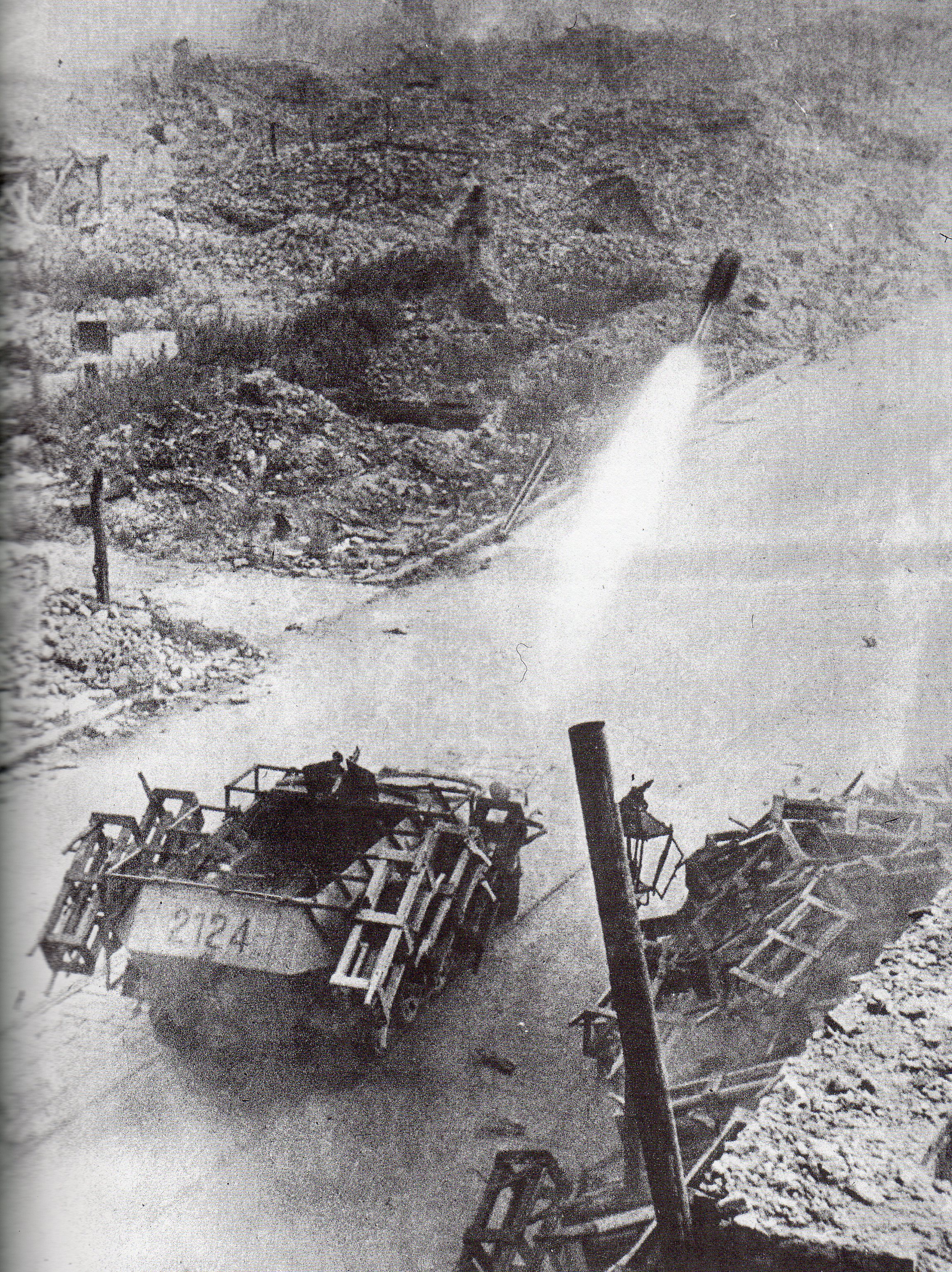특히 1944년 바르샤바 봉기 당시, 바르샤바 시내의 폴란드 저항군 진지를 공격하는 데 사용되었다는 기록과 사진 자료가 남아있다.[4] 부르프라멘 40은 280mm 고폭탄 로켓이나 300mm 고폭탄 로켓, 320mm 소이탄 로켓 등을 발사할 수 있었다. 로켓의 정밀도는 다소 떨어졌지만, 짧은 시간에 대량의 화력을 집중하여 특정 지역을 제압하는 데 효과적이었다. 이러한 특성 때문에 특히 시가전 상황에서 독일 기갑 부대에 대한 근접 화력 지원 무기로서 유용하게 활용되었다.[4]
