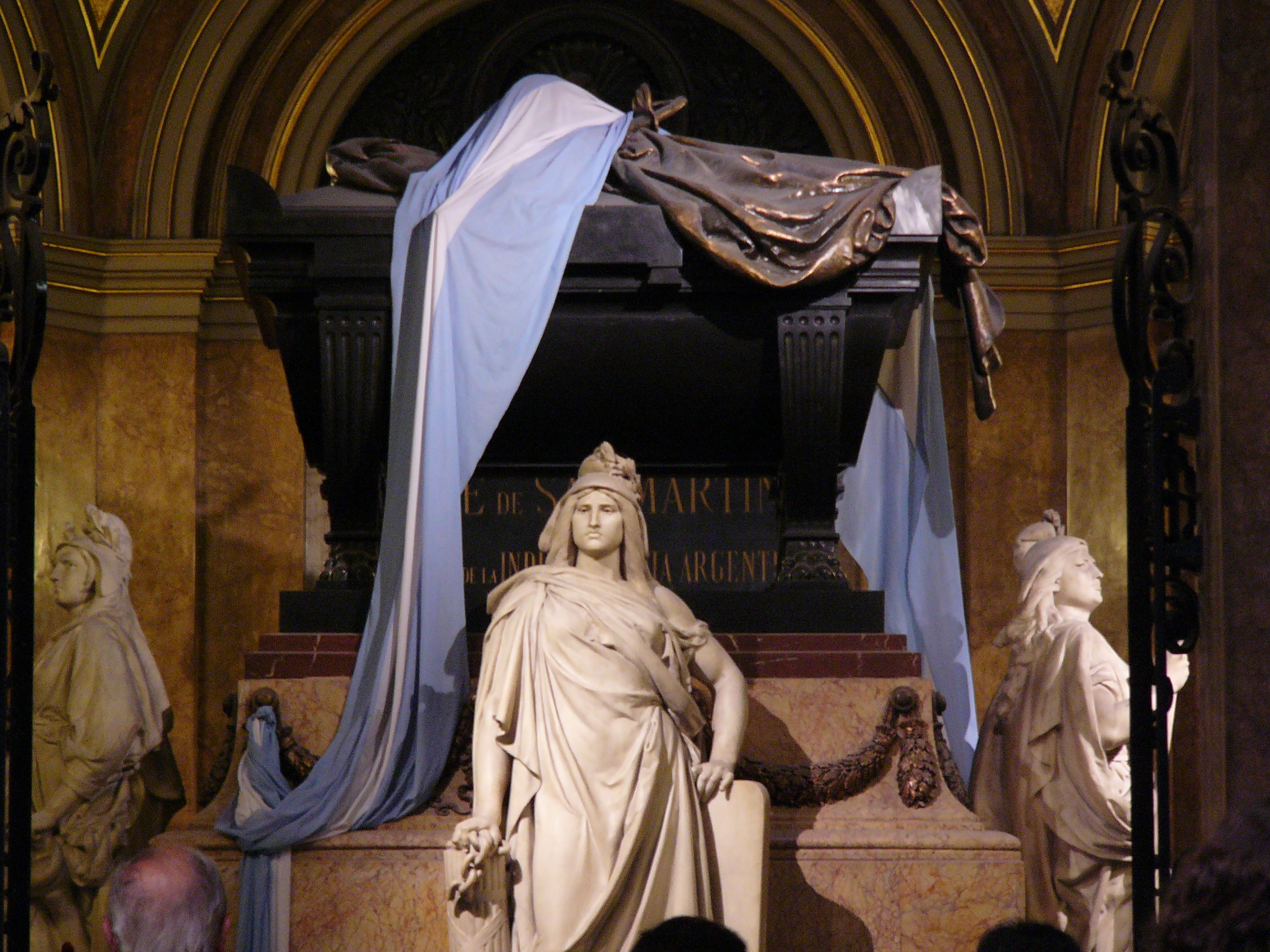 1880년 프랑스에 있던 호세 데 산 마르틴 장군의 시신이 아르헨티나로 와서, 부에노스아이레스 대성당 오른쪽 통로와 연결된 자리에 마련한 무덤에 이장되었다.[20] 산 마르틴 장군의 무덤은 프랑스의 조각가 알베르트 에르네스트 카리에 벨뢰즈가 설계하여, 여러 가지 색상의 대리석으로 만들었다. 산 마르틴 장군에 의해 해방된 세 지역인 아르헨티나, 칠레, 페루를 상징하는 여인상 세 개가 에워싼 가운데, 그의 시신이 안치된 검은색 석관이 드높여진 모양을 하고 있다. 대성당에는 산 마르틴 장군 외에도 후안 그레고리오 데 라스 에라스와 토마스 구이도 장군들의 무덤 그리고 무명 용사의 무덤 또한 안치되어 있다.