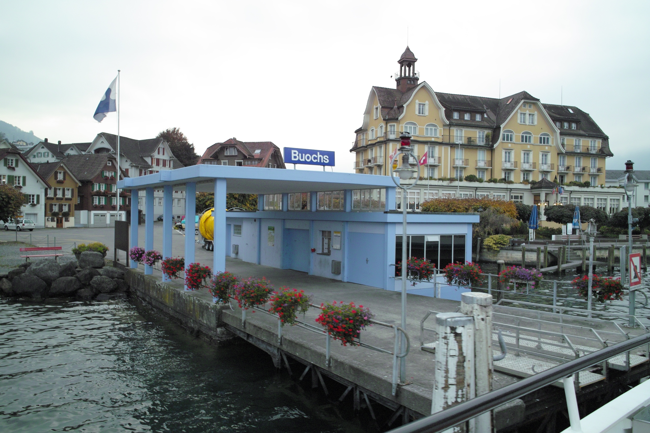 여름에는 루체른호 해운에서 운영하는 정기 보트로 부옥스 부두에 도착할 수 있다.