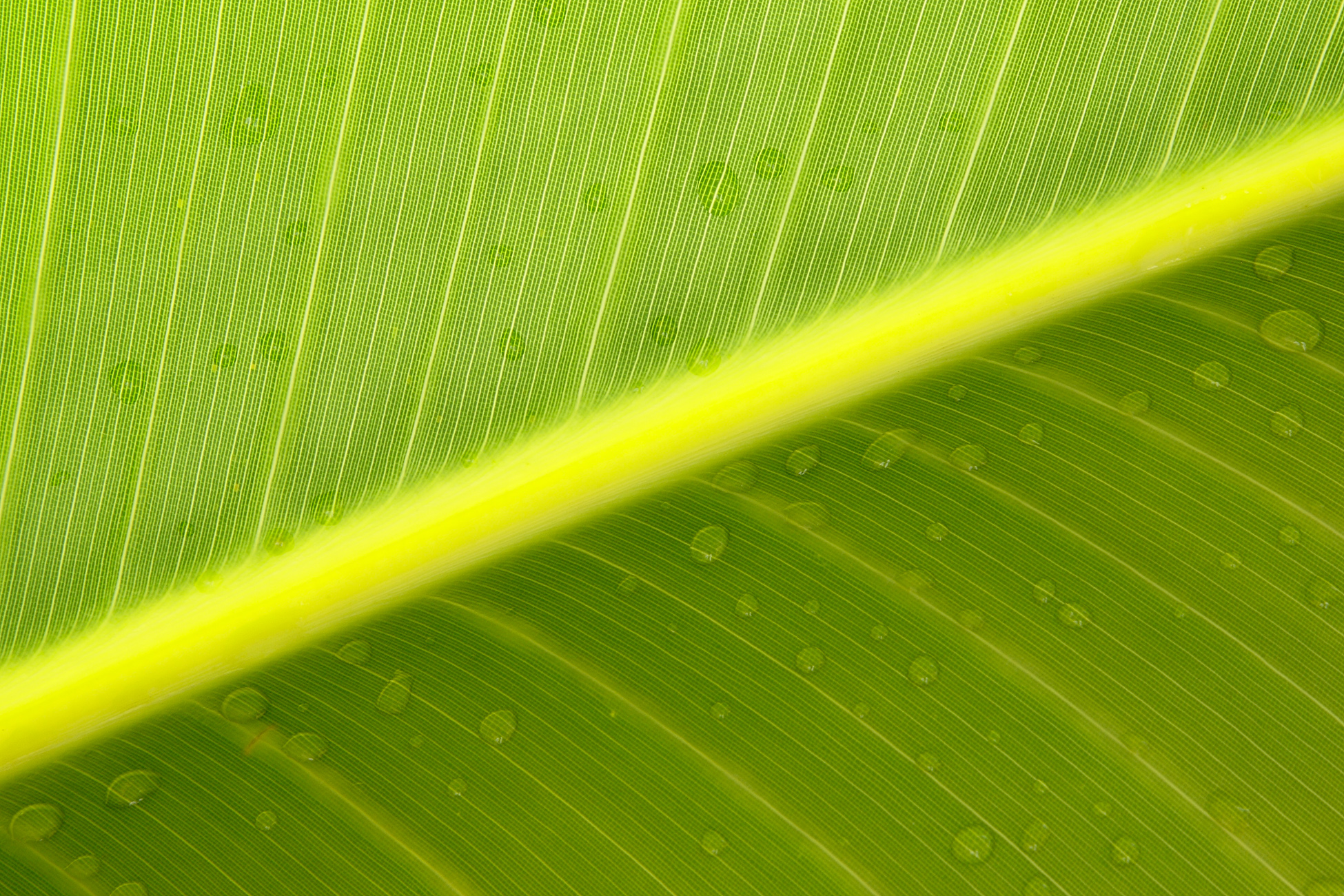 잎은 길이가 3m, 폭이 0.5m 정도로 크며[15], 끝은 녹색이지만 잎자루 밑부분은 노란색을 띤다.[15] 성숙한 개체의 경우 잎 부채는 20개에서 45개의 잎으로 구성되며, 각 잎의 길이는 최대 11m에 달하기도 한다.[25][5]