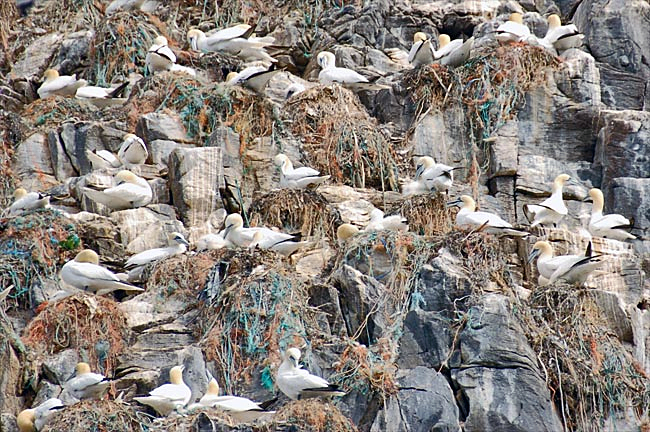 세인트킬다 섬에서는 봄에 성체와 알을 채취했고, '구가스'라고 불리는 살찐 새끼는 8월에 절벽에서 수확했다. 섬 주민들은 깃털로 베개와 가구를 채우고, 가넷의 위는 기름을 담는 데, 가슴 뼈는 램프 심지로 사용하는 등 새의 모든 부위를 활용했다.[40][41]
