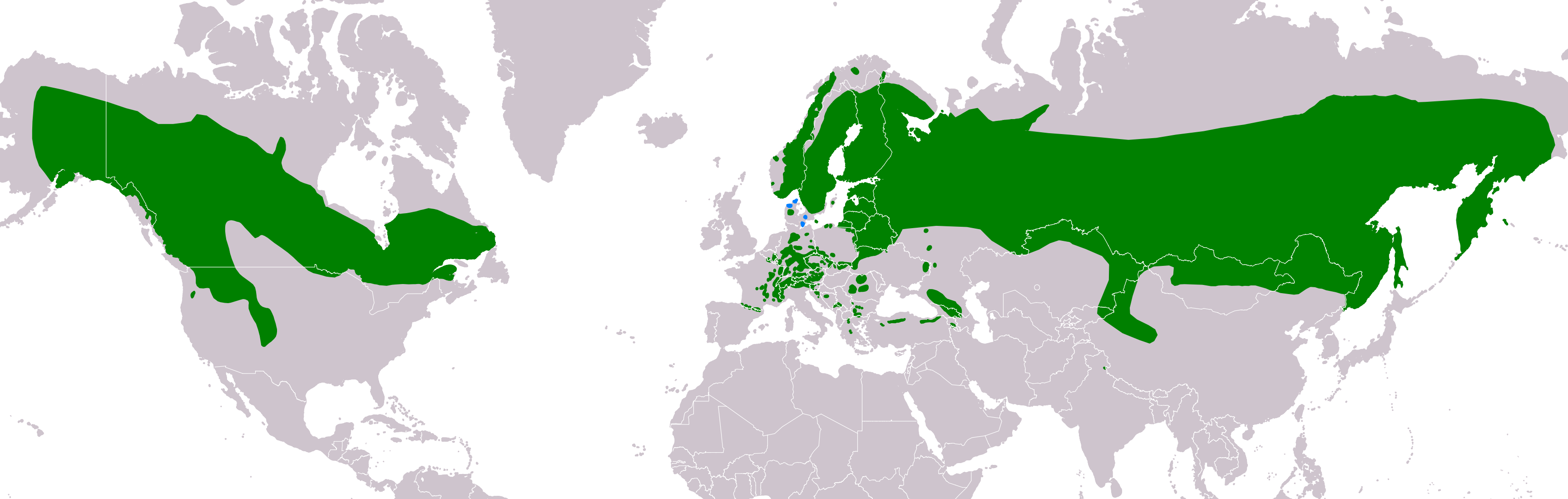 분포 지역은 북아메리카와 유라시아 대륙 북부에 띠 모양으로 넓게 퍼져 있으며, 일부 개체는 중앙아시아에도 서식한다. 기본적으로 서식지 내에서는 텃새로 생활한다.