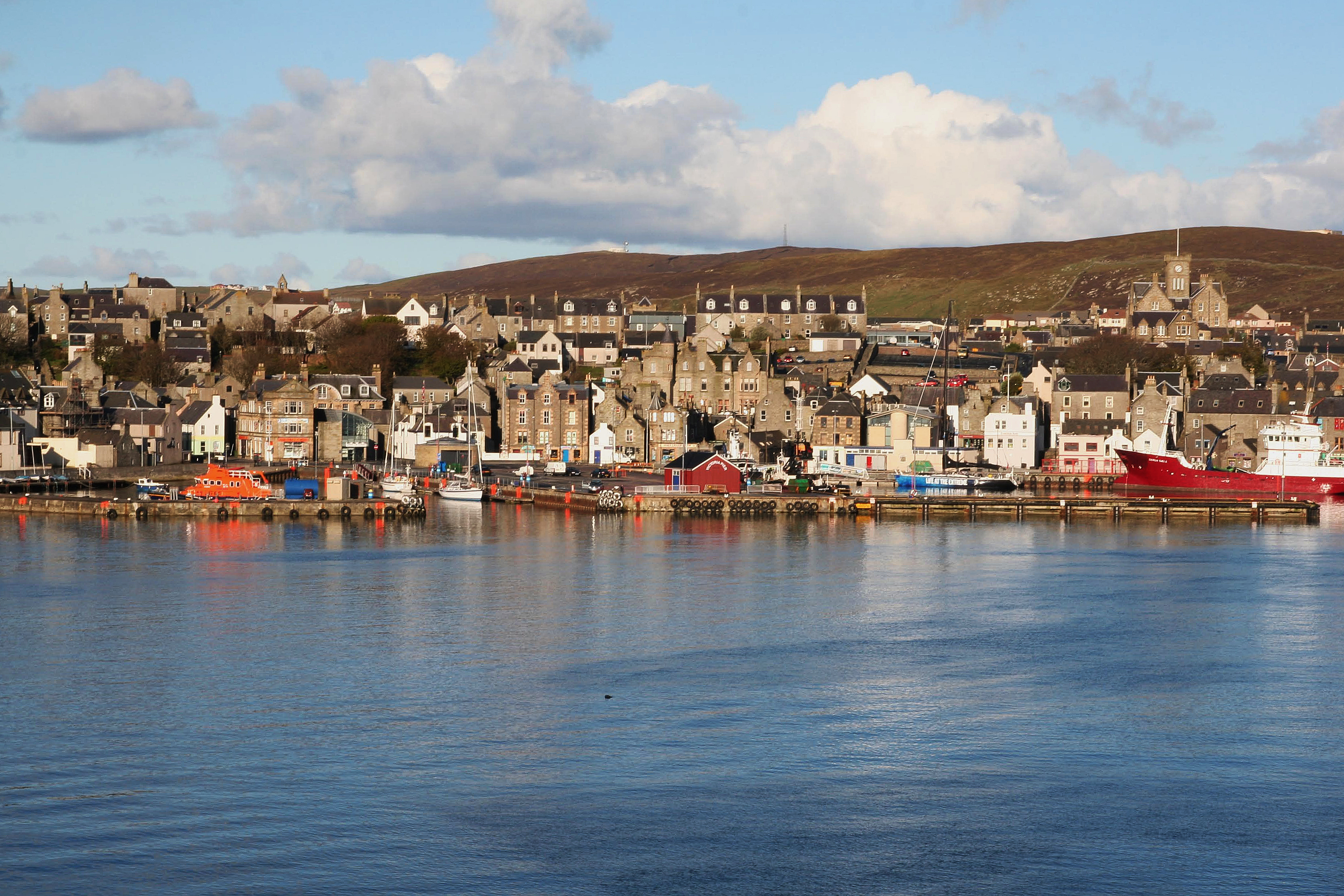 오크니 제도는 스코틀랜드 본토에서 북쪽으로 16km 떨어진 해상에 있으며, 펜틀랜드 해협으로 격리되어 있다.[170] 메인랜드 섬은 가장 큰 섬으로, 면적은 523.25km²이다.[170] 20개의 유인도가 있으며,[174] 2001년 섬 전체 인구는 19,245명이었다.[171] 가장 큰 도시는 커크월이다.[171]2. 2. 셰틀랜드 제도