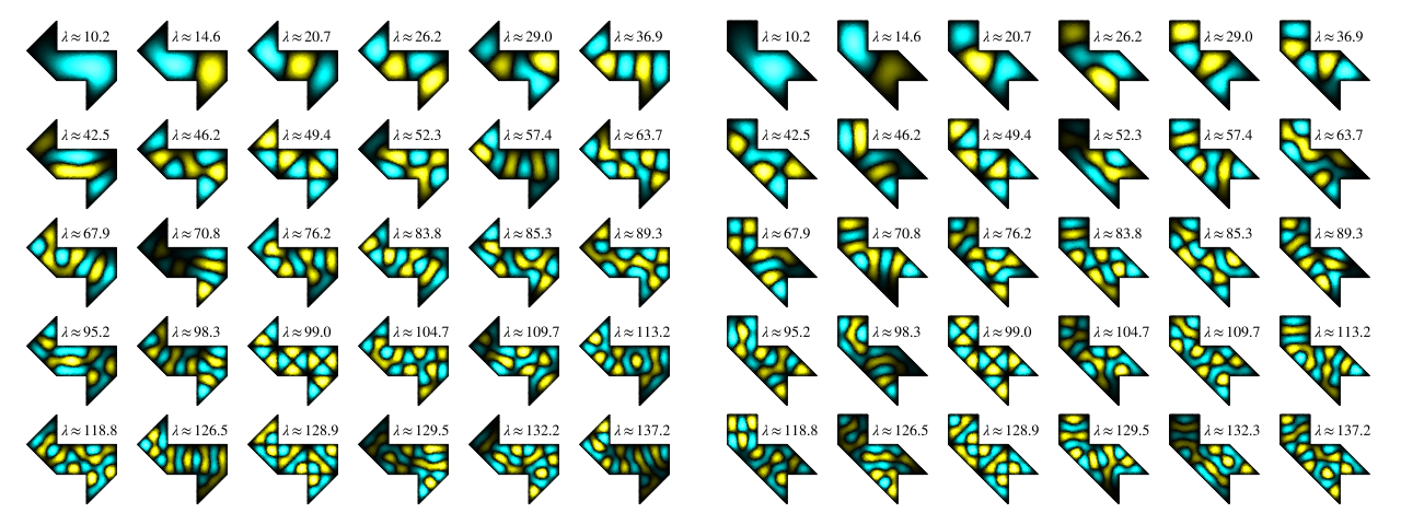 따라서 이 질문은 다음과 같이 재구성할 수 있다. ''λ''''n''의 값만 알고 있을 경우 ''D''에 대해 무엇을 추론할 수 있는가? 또는 더 구체적으로: 등고유값을 갖는 두 개의 서로 다른 영역이 존재하는가?