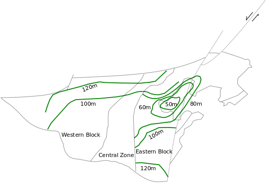 - 북부 지역을 제외한 지괴 대부분에서 해양 퇴적물이 발견되어, 이 변형 사건 이후 지괴는 비교적 안정적이었다고 결론지을 수 있다.[3]