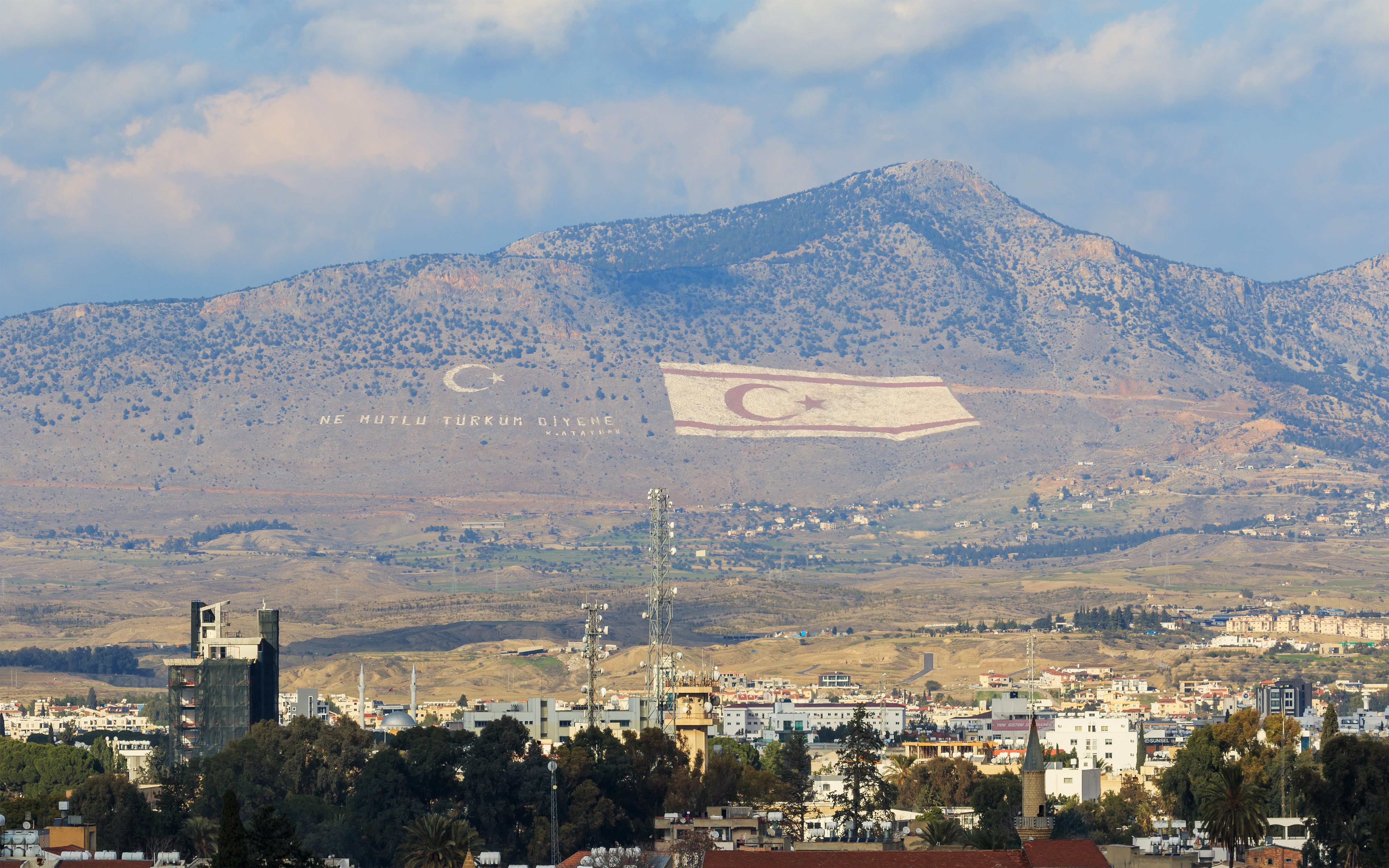 426m 너비의 북키프로스 국기 이미지가 키레니아 산맥의 베스파르마클라 산(그리스어로 '다섯 손가락'을 의미하는 펜타닥틸로스 산) 남쪽 측면에 그려져 있다. 이 국기 옆에는 터키의 국장인 별과 초승달과 케말주의의 구호인 ''Ne mutlu türküm diyene''("나는 터키인이라고 말하는 사람은 행복하다")가 함께 새겨져 있다. 이 거대한 국기는 분단된 수도 니코시아의 그린 라인 북쪽에 위치하여 남쪽 지역에서도 뚜렷하게 보인다. 처음에는 1980년대에 돌을 이용하여 만들어졌으며, 현재는 터키에서 온 팀이 염료를 사용하여 주기적으로 색상을 관리하고 있다.[26][27]