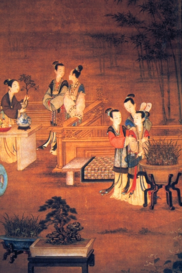 Dwarf Potted Trees in Paintings, Scrolls and Woodblock Prints