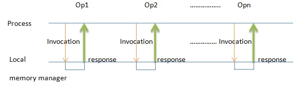만약 ''n''개의 프로세스가 있고, 각 프로세스 ''i''에 대해 ''Mi''개의 메모리 연산이 있으며, 모든 연산이 순차적으로 실행된다고 가정해 보자. 그러면 (''M1'' + ''M2'' + … + ''Mn'')!/(''M1''! ''M2''!… ''Mn''!) 개의 연산 인터리빙이 가능하다는 결론을 내릴 수 있다. 이 결론의 문제는 인터리빙된 연산의 정확성을 결정하는 것이다. DSM의 메모리 일관성은 어떤 인터리빙이 허용되는지 정의한다.