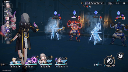'붕괴: 스타레일'은 일본식 롤플레잉 게임 스타일의 턴제 전술 전투 시스템을 채택했다.[7][8] 플레이어는 캐릭터를 육성하고, 최대 4명의 캐릭터로 팀을 구성하여 전투에 참여한다.