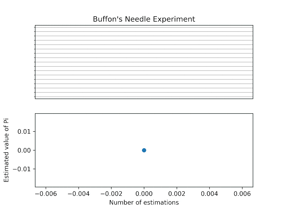 뷔퐁의 바늘 문제를 이용하면 원주율(π) 값을 추정할 수 있다. 바늘을 떨어뜨려 바늘과 선이 교차하는 확률을 계산하고, 이 확률을 이용하여 π 값을 근사하는 방식이다.[6]