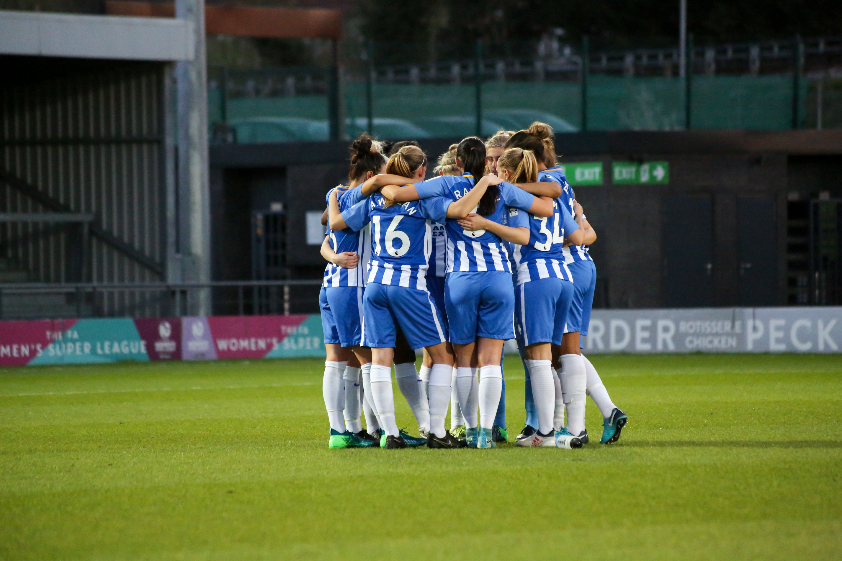 2018년, 리그 구조 개편에 따라 브라이턴 & 호브 앨비언 WFC는 잉글랜드 여자 축구 최상위 리그인 FA WSL 1 합류 신청이 승인되어 2018-19 시즌부터 참가하게 되었다. 승격 발표와 함께, 클럽은 1군 홈 경기를 크롤리 타운 FC의 홈구장인 브로드필드 스타디움에서 치를 것이라고 발표했다.[7]