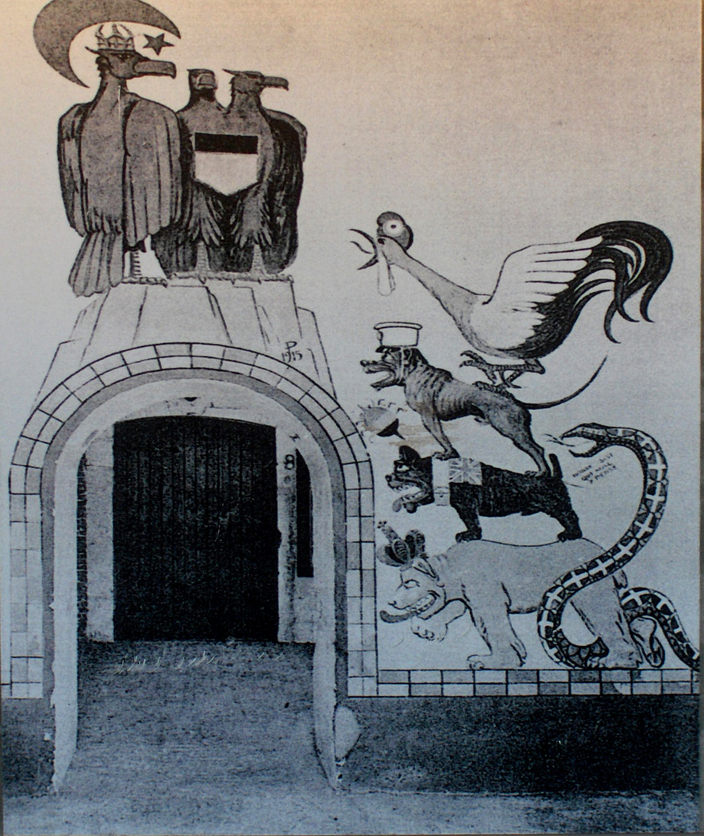 벨기에 오스텐드의 나폴레옹 요새 벽에는 제1차 세계 대전 당시 독일 군인이었던 하인리히-오토 피퍼(Heinrich-Otto Pieper)가 그린 풍자화가 있다. 이 그림은 터키 초승달 아래 바위에 앉은 독일과 오스트리아-헝가리의 독수리가, 브레멘 음악대 동물들로 상징화된 연합군(프랑스 수탉, 일본 자칼, 영국 불독, 러시아 곰, 이탈리아 뱀, 벨기에 딱정벌레)의 공격 시도를 경멸적으로 바라보는 모습을 묘사한다.