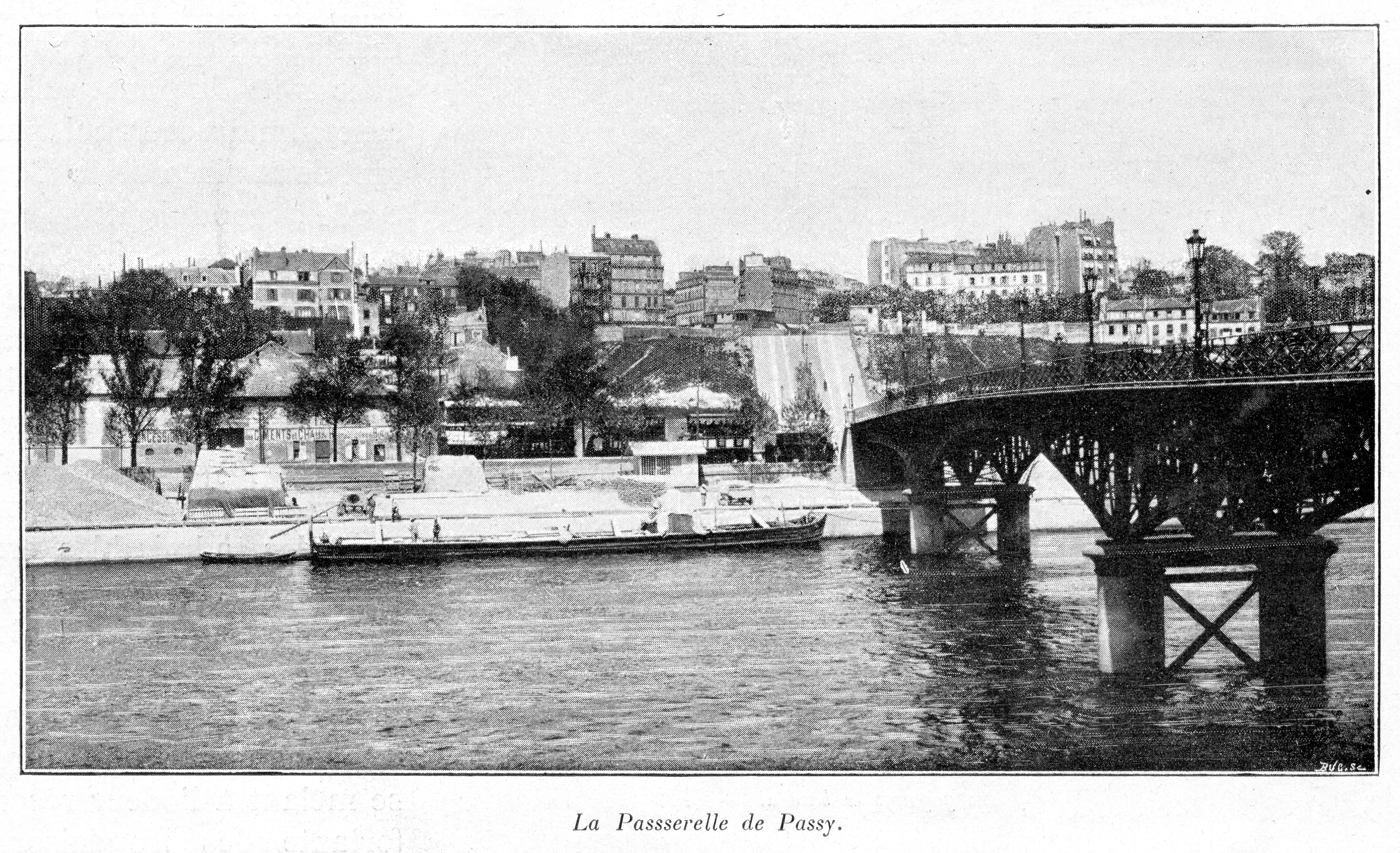 새 다리 건설 동안 강을 계속 건널 수 있도록 파시 인도교가 하류로 30미터 이동되었다.[3] 인도교의 이동은 1903년 8월 20일과 21일에 이루어졌으며, 22일에 인도교의 안전성이 테스트되었고 23일에 다시 통행이 가능해졌다.[4] 파시 인도교는 1905년 다리가 완공된 후에야 철거되었다. 새로운 다리의 건설은 건설사 Daydé & Pillé의 Louis Biette의 감독 하에 이루어졌다.[3]2. 3. 명칭 변경
