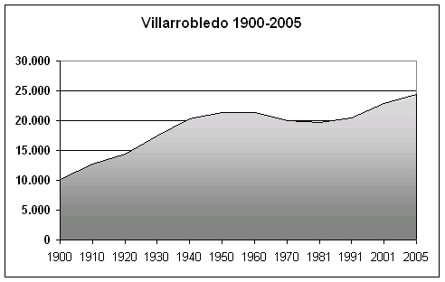 비야로블레도는 1900년부터 2010년까지 인구가 꾸준히 증가했다. 2010년에는 26,686명으로, 20세기 초반에 비해 2배 이상 늘었다. 특히 2000년대 이후 동유럽 시민들의 이민으로 인구가 크게 증가했다.