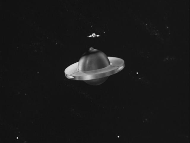 비행접시는 빠르게 다른 장르로 확산되었다. 메트로 골드윈 메이어(Metro-Goldwyn-Mayer)의 대작 영화 ''금지된 행성''은 윌리엄 셰익스피어의 희곡 ''템페스트''를 미래적으로 각색한 1956년작으로, 인간이 1950년대 비행접시를 닮은 우주선인 ''C-57D''로 우주를 여행한다.[91] ''환상 특급''의 에피소드 "단풍나무 거리의 괴물들", "태양으로부터 셋째", "죽음의 배", "인간을 섬기기 위해", "침입자", 그리고 "목요일에 우리는 집으로 떠난다"는 모두 ''금지된 행성''의 상징적인 접시를 사용했다.[92] ''C-57D''에 이어 텔레비전 시리즈 ''우주 가족 로빈슨''(1965-1968)의 ''주피터 2''와 같은 원반형 우주선이 더 광범위한 SF에 등장했다.[93] 비행접시는 텔레비전 시리즈 ''바빌론 5''(1994-1998)에서 스타쉽으로 등장하며, 브리라는 종족이 사용한다.[94] 닥터 후는 ''달렉의 지구 침공 2150 A.D.''에서 달렉이 사용하거나 "열 번째 행성"에서 사이버맨이 사용하는 다양한 디자인의 비행접시를 선보였다.[95][96] 영화 ''인디펜던스 데이''(1996)에 등장하는 외계인들은 거대한 도시 크기의 접시 모양 우주선으로 인류를 공격했다.[97]