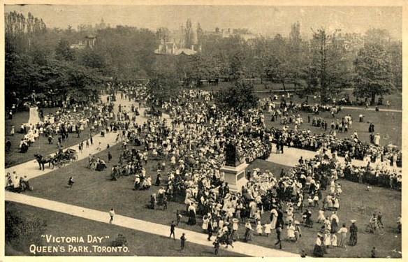 1854년 빅토리아 여왕의 35번째 생일에는 당시 캐나다 서부(현재의 온타리오) 주민 약 5,000명이 정부 청사(현재 토론토의 킹 스트리트와 심코 스트리트 근처) 앞에 모여 "여왕에게 환호"를 보냈다. 19세기 여왕 생일 축하 행사의 전형적인 예로, 1866년 5월 24일 캐나다 서부의 오메메 마을에서는 해 뜨기 전 세레나데 연주, 소풍, 운동 경기, 조명 전시, 횃불 행진, 자정 축포 발사 등 하루 종일 축제가 열렸다. 1867년 캐나다 연방 결성 이후 빅토리아 데이 축하 행사는 온타리오와 퀘벡 지역 사회에서 열렸으며, 캐나다가 확장됨에 따라 다른 지역으로 퍼져나갔다.