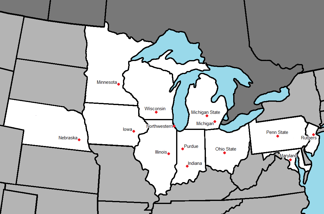 이후 펜실베이니아 주립 대학교(1990년),[9] 네브래스카 대학교 링컨(2011년),[10] 메릴랜드 대학교와 릿거스 대학교(2014년)[11]이 순차적으로 합류했다.