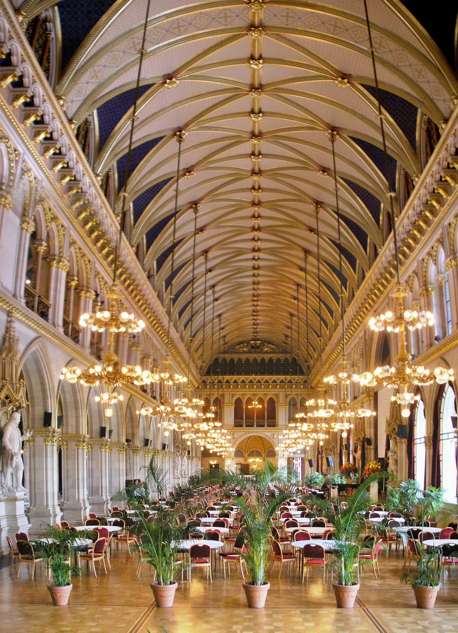 시청 내부에는 역사적인 '비너 라트하우스켈러' 레스토랑이 자리 잡고 있다. 이 레스토랑은 여러 개의 바로크 홀로 구성되어 있으며, 전통 비엔나 특선 요리부터 웅장한 갈라 뷔페까지 다양한 메뉴를 제공한다.