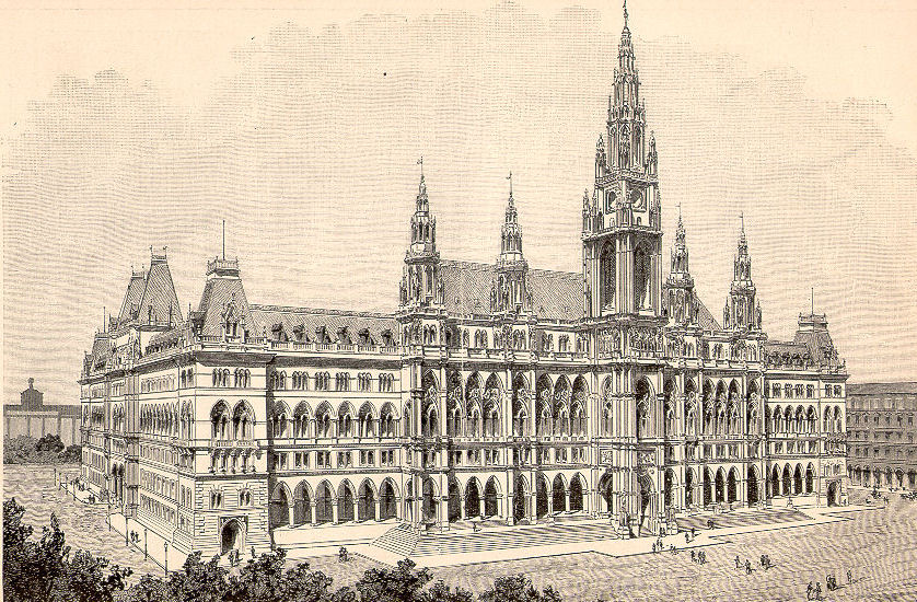 19세기 중반, 1316년 오스트리아 공작 미남 프리드리히가 헌정하고 1700년경 바로크 건축 건축가 요한 베른하르트 피셔 폰 에를라흐가 재건한 옛 빈 시청사는 사무실이 너무 작아졌다. 1860년대 호화로운 링슈트라세 건설과 함께 새로운 시청 건설을 위한 경쟁이 시작되었고, 독일 건축가 프리드리히 슈미트가 이 경쟁에서 우승했다.