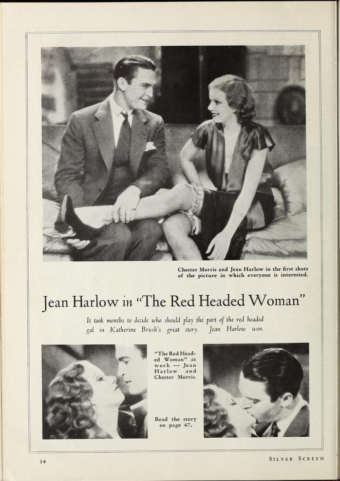 《빨간 머리 여자》는 1932년 개봉한 미국 영화로, 신분 상승을 위해 부유한 남성을 유혹하는 여성의 이야기를 그린다. 릴리안 앤드루스(진 할로우)는 상류 사회 진입을 시도하지만, 실패하고 파리에서 다른 남자와 있는 모습으로 영화가 마무리된다. 이 영화는 F. 스콧 피츠제럴드와 마르셀 드 사노가 각본을 썼으며, 아니타 루스가 코미디 요소를 더해 재작업했다. 비평가들로부터 긍정적인 평가를 받았지만, 영국에서는 상영이 금지되었다.