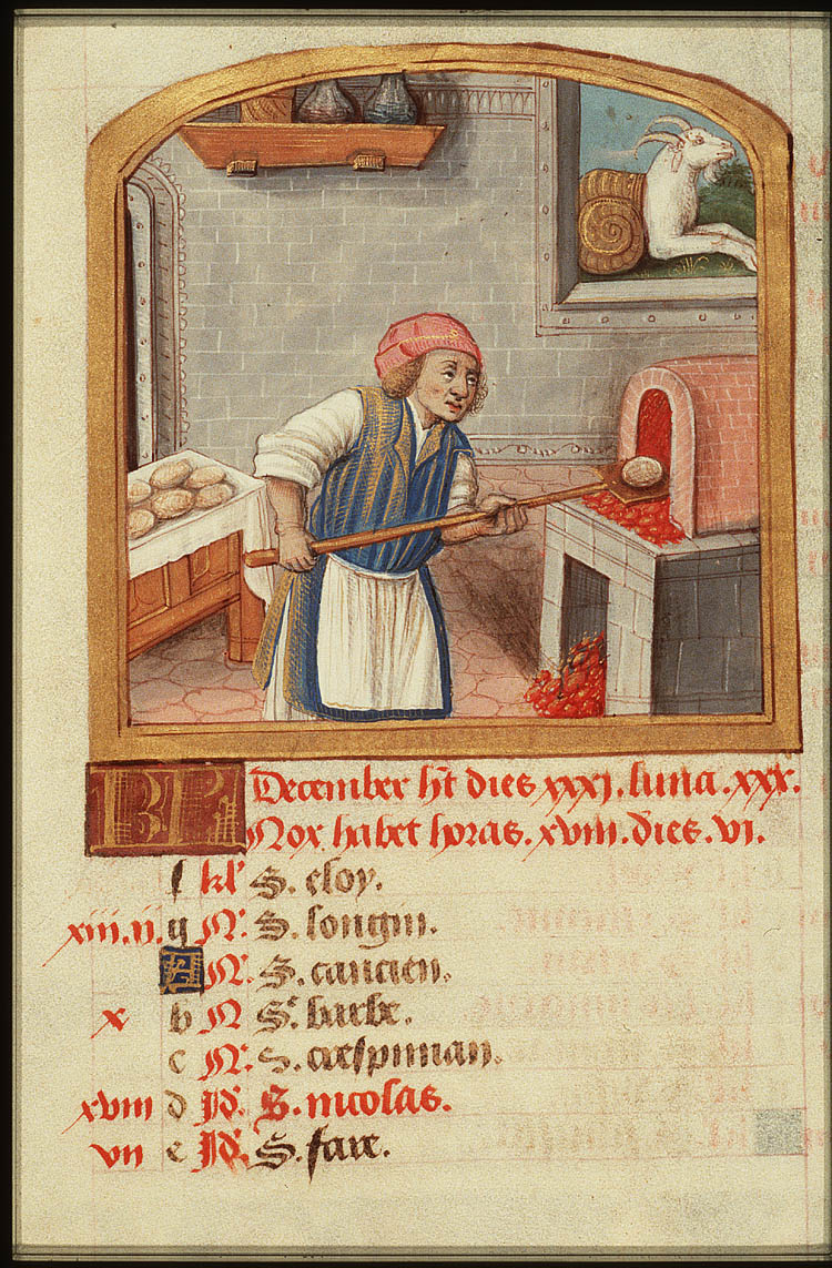 유럽 중세 시대에는 밀빵이 최상급의 빵으로 여겨졌지만, 특히 농민이나 도시 하층 주민은 밀에 다른 것을 섞은 빵이나 호밀빵을 먹는 경우가 많았다. 기근 시에는 더욱 섞는 양이 많아졌다. 또한, 당시에는 큰 둥근 빵을 얇게 썬 것을 트랜처라고 칭하여 접시 대신 사용했고, 곡물 외의 영양원이 부족했기 때문에 15세기 프랑스 오베르뉴의 귀족은 1인당 연간 500kg의 빵을 소비했다.[110] 이 무렵에는 이미 도시에 빵집이 설립되었지만, 도시 당국은 주민들의 생활을 위해 빵의 가격을 일정하게 억제하도록 규제를 가했고, 이 때문에 밀 등 원료의 가격이 높아지면, 가격은 일정하게 유지되는 대신 빵의 무게가 가벼워지거나 섞는 것이 많아졌다.[111] 그러나, 도시 당국은 일반적으로 빵의 품질에 대해서도 엄격한 규제를 가하는 경우가 많았다. 빵은 사람들의 생활에 없어서는 안 될 것이었으며, 빵집의 길드는 정육점과 함께 반쯤 공적인 지위를 갖고 큰 힘을 갖는 경우가 많았다. 이 경우의 빵집은 스스로 가루를 반죽하여 빵을 굽는 것까지 일관되게 하는 것을 의미하며, 시민이 반죽한 가루를 가져와서 품삯을 받고 빵을 굽는 것과는 명확한 격차가 있었다. 농촌에서는 영주가 설치한 빵 굽는 가마를 영민들이 이용해야 한다는 사용 강제권이 설정되었지만, 나중에는 농촌에서도 빵집에 의해 빵이 구워지게 되었다.[112]