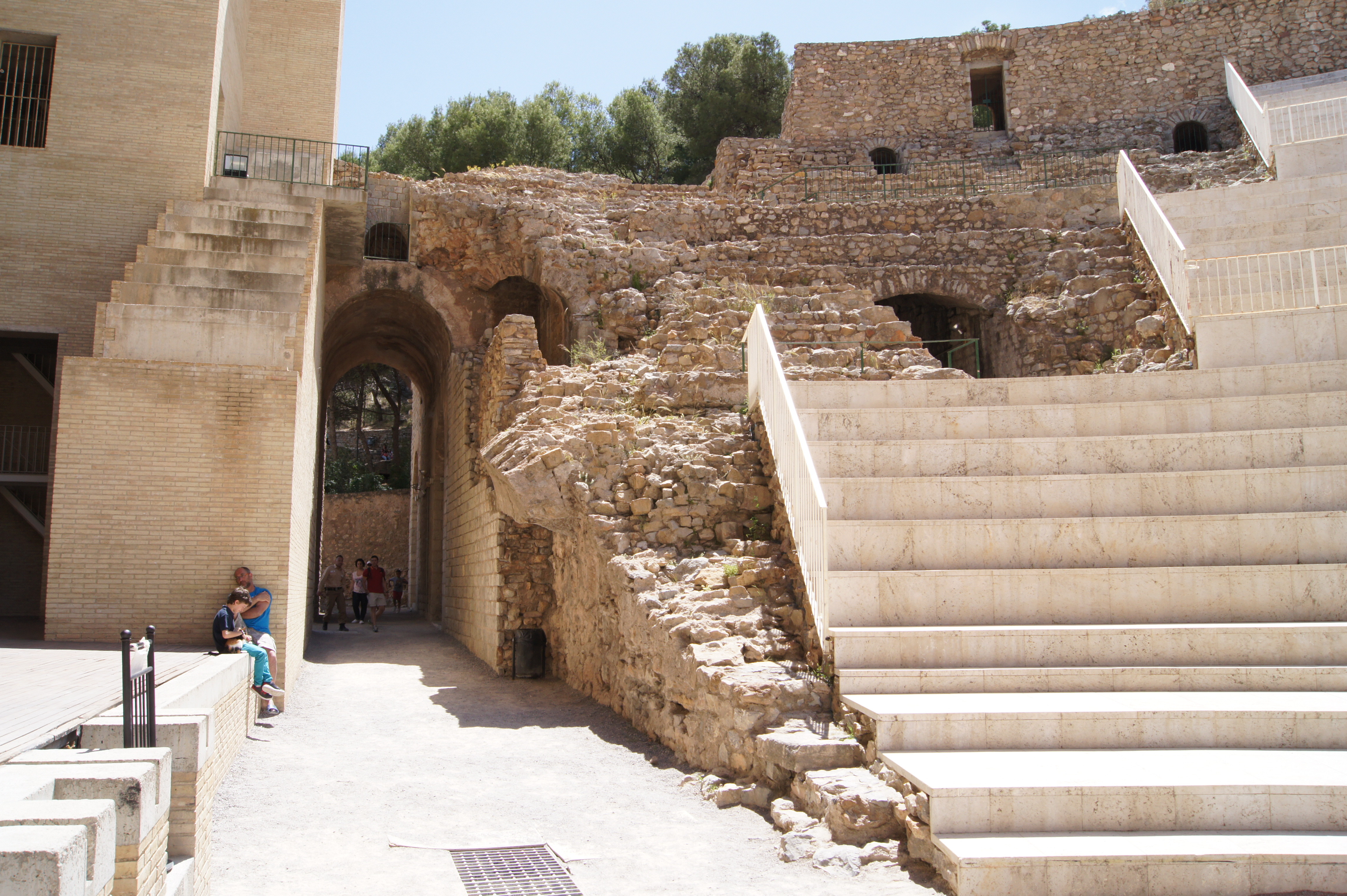 - 20세기 후반에 부분적으로 복원된 로마 극장은 성채 언덕의 북쪽 경사면에 위치해 있다. 스페인에서 최초로 공식 지정된 국가 기념물(1896년)이다.