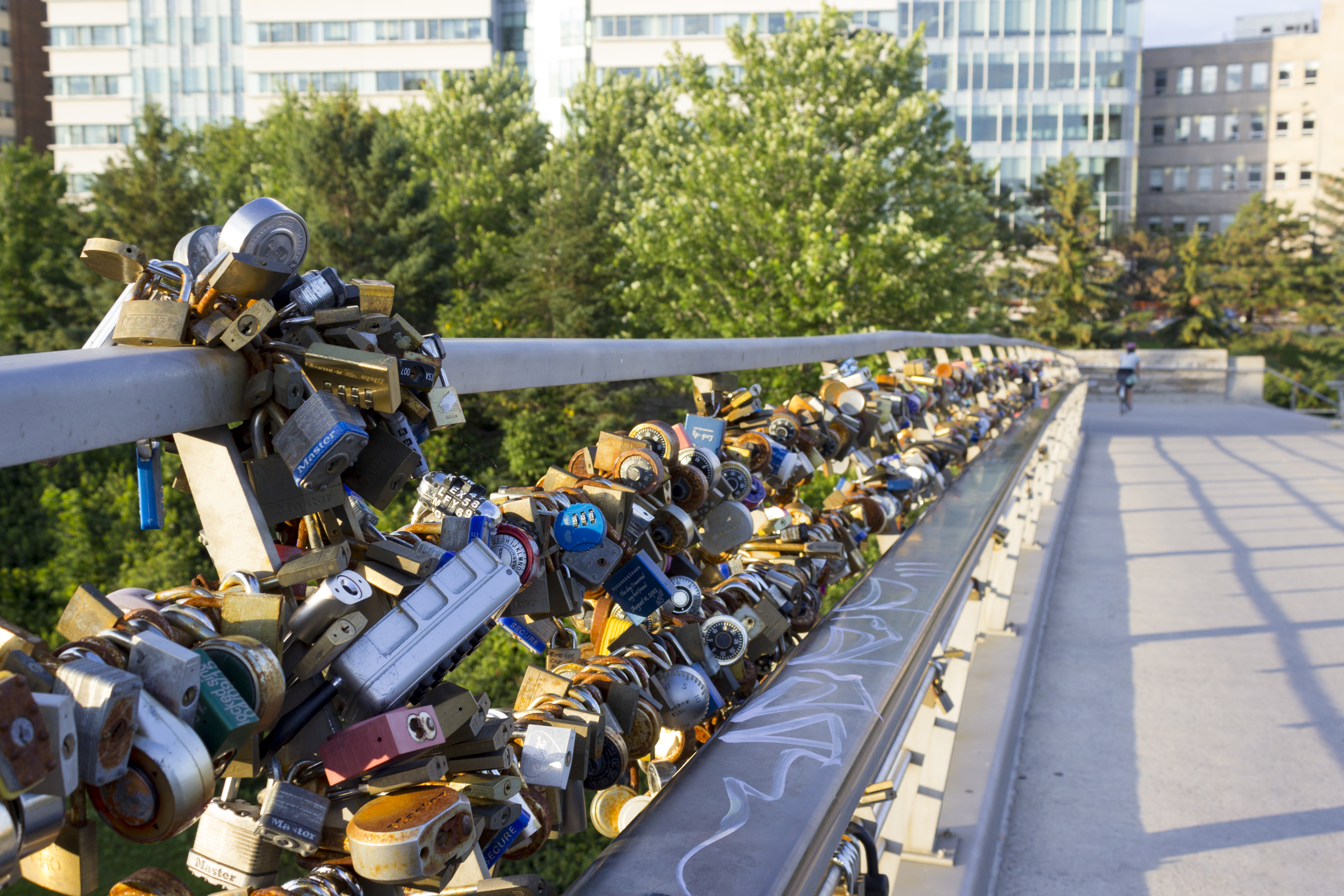 - 캐나다에서는 밴쿠버 섬 유클렛에 있는 와일드 퍼시픽 트레일을 따라 볼 수 있는 "사랑의 자물쇠"에 대해 "명백히 자연과 조화되지 않는다"고 생각하는 측의 이견이 쏟아지고 있다. 토론토의 험버 브리지에서도 미관과 안전상의 문제가 우려되어 자물쇠가 철거되고 있다.[62]